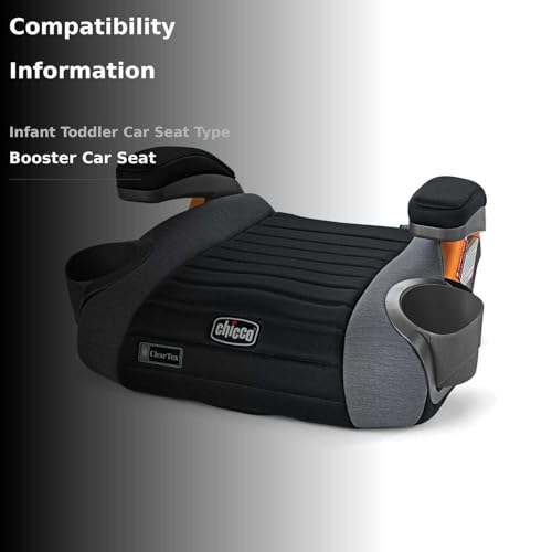 BOOSTER CAR SEAT FOR 40 LBS AND UP — GoFit ClearTex is designed for children who are at least 4 years old, between 40-110 pounds and 44-57 inches tall and who can sit relatively still in the same seated position throughout the car ride.