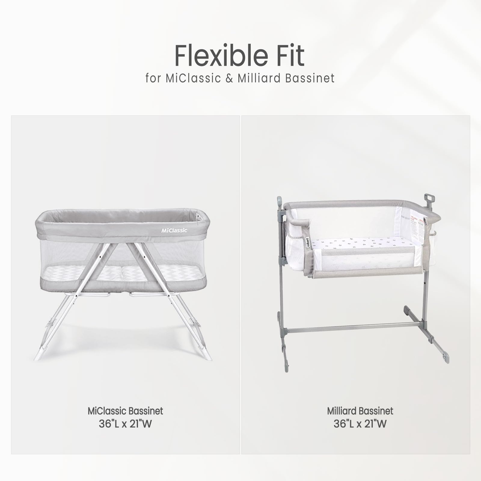 Perfect Custom Fit: This set includes 2 pack 35x20 bassinet sheets which compatible with MiClassic & Milliard Bassinet and large bassinet and bedside sleeper for baby. Please make sure your mattress size before you buy!