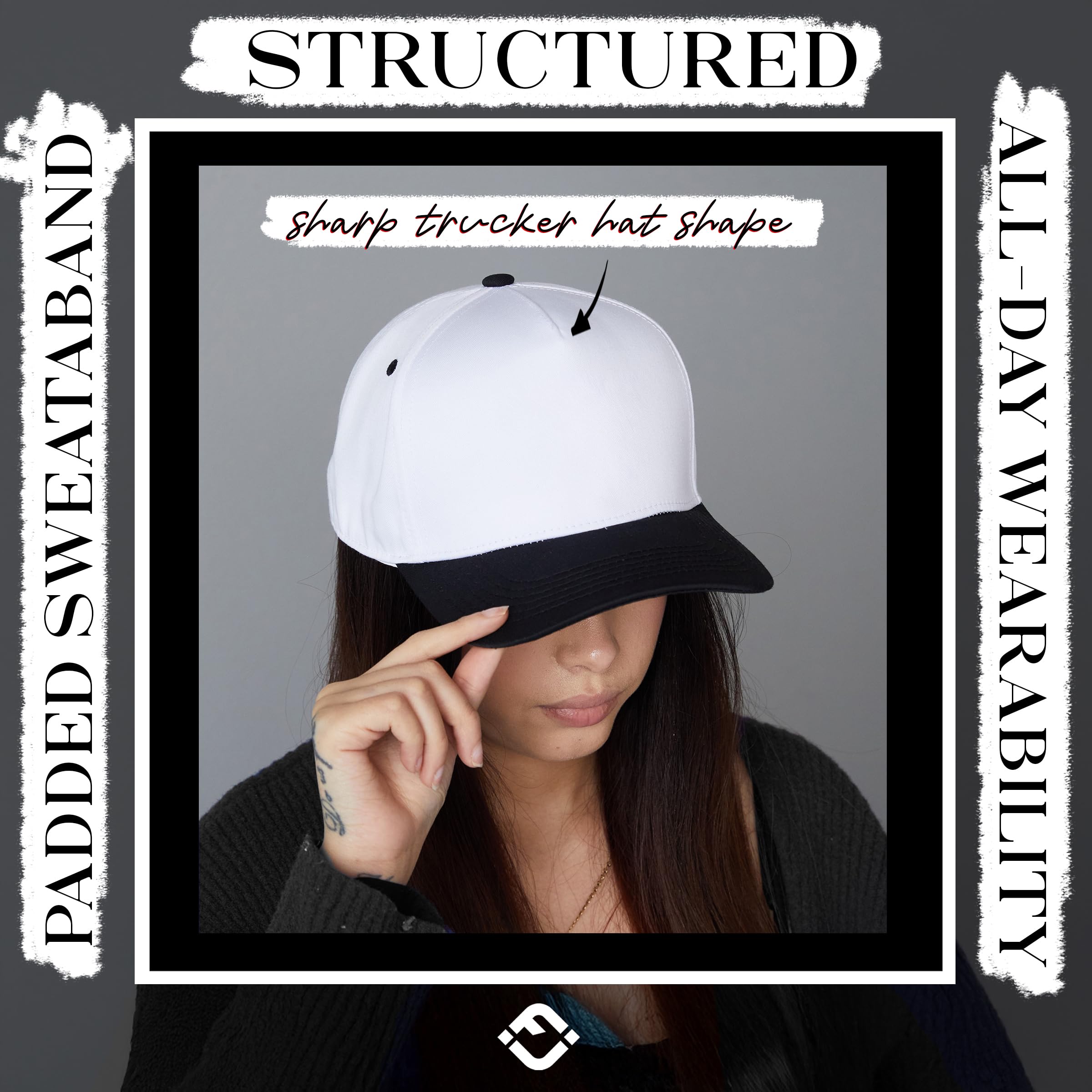 TWO TONE HAT: Experience the perfect blend of comfort and style with our two tone trucker hat, a unique combination of cotton and polyester. Designed for the trucker hat men who value durability and breathability, this hat is perfect for extended wear.