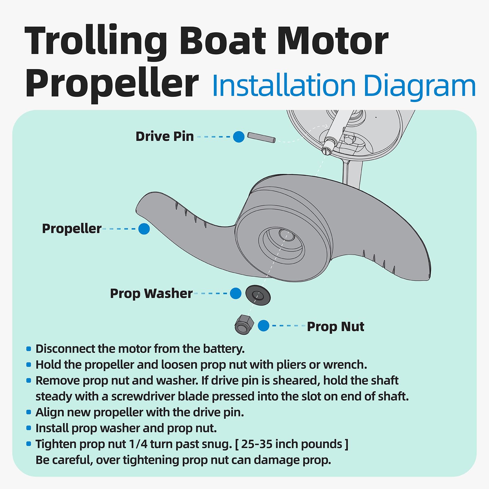 【High Quality Materials】Trolling motor propeller made from high-quality plastic, won't get stuck with weeds or other underwater obstacles, can withstand harsh marine environments and the installation is easy and fast.