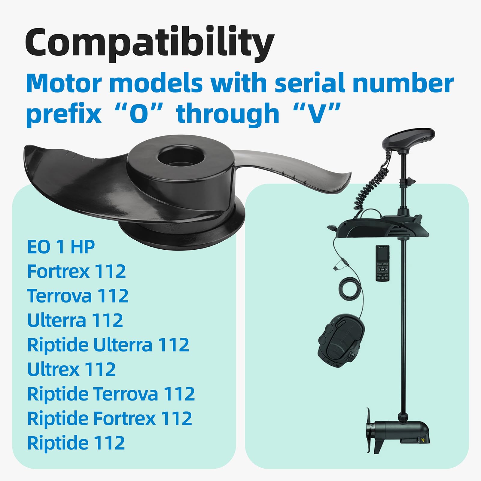【Compatible Models】MKP-38 Weedless Wedge 2 Prop(NOTE: Motor models with serial number prefix “O” through “V”) replacement for Minn Kota EO 1 HP, Fortrex 112, Terrova 112, Ulterra 112, Riptide Ulterra 112, Ultrex 112, Riptide Terrova 112, Riptide Fortrex 112, Riptide 112 etc.