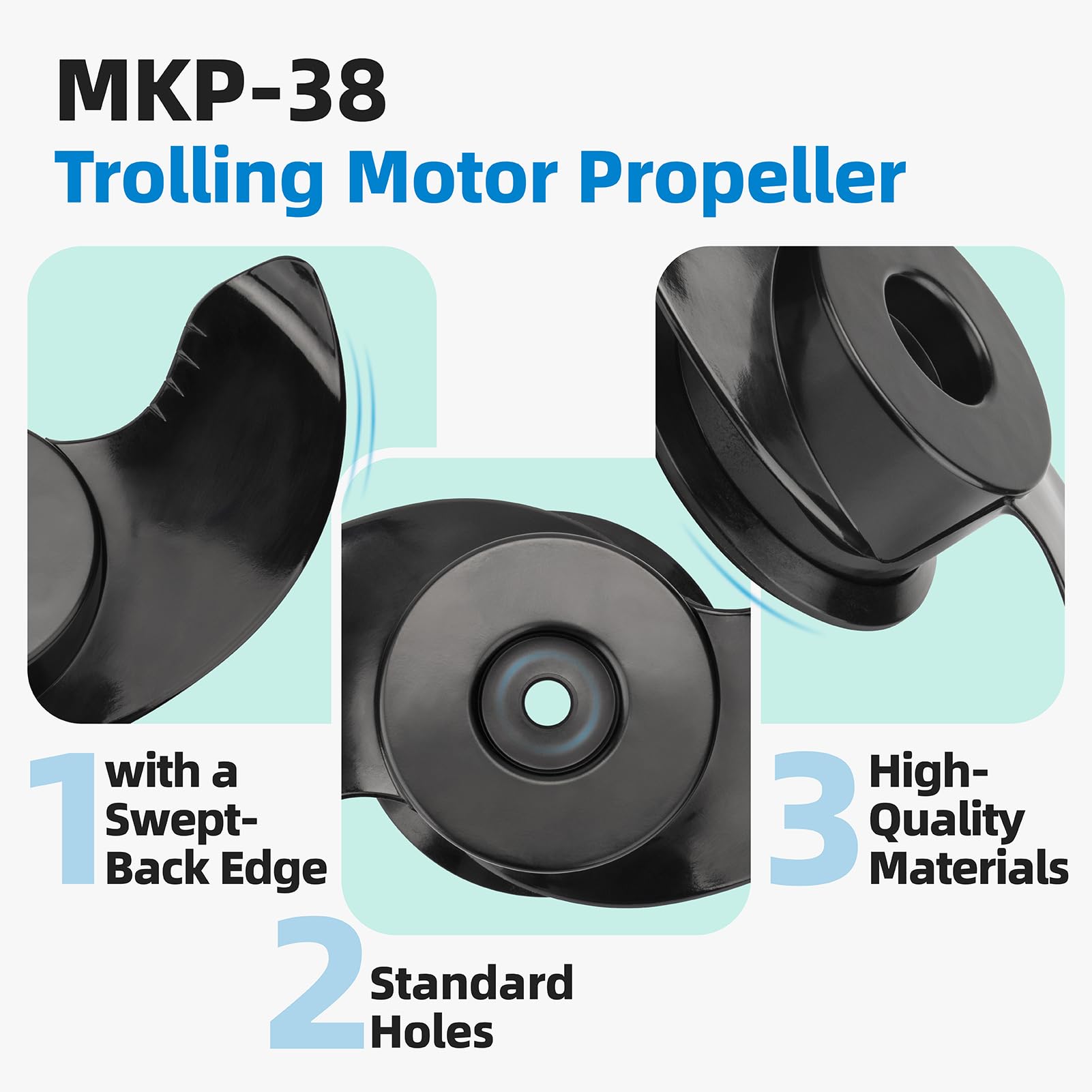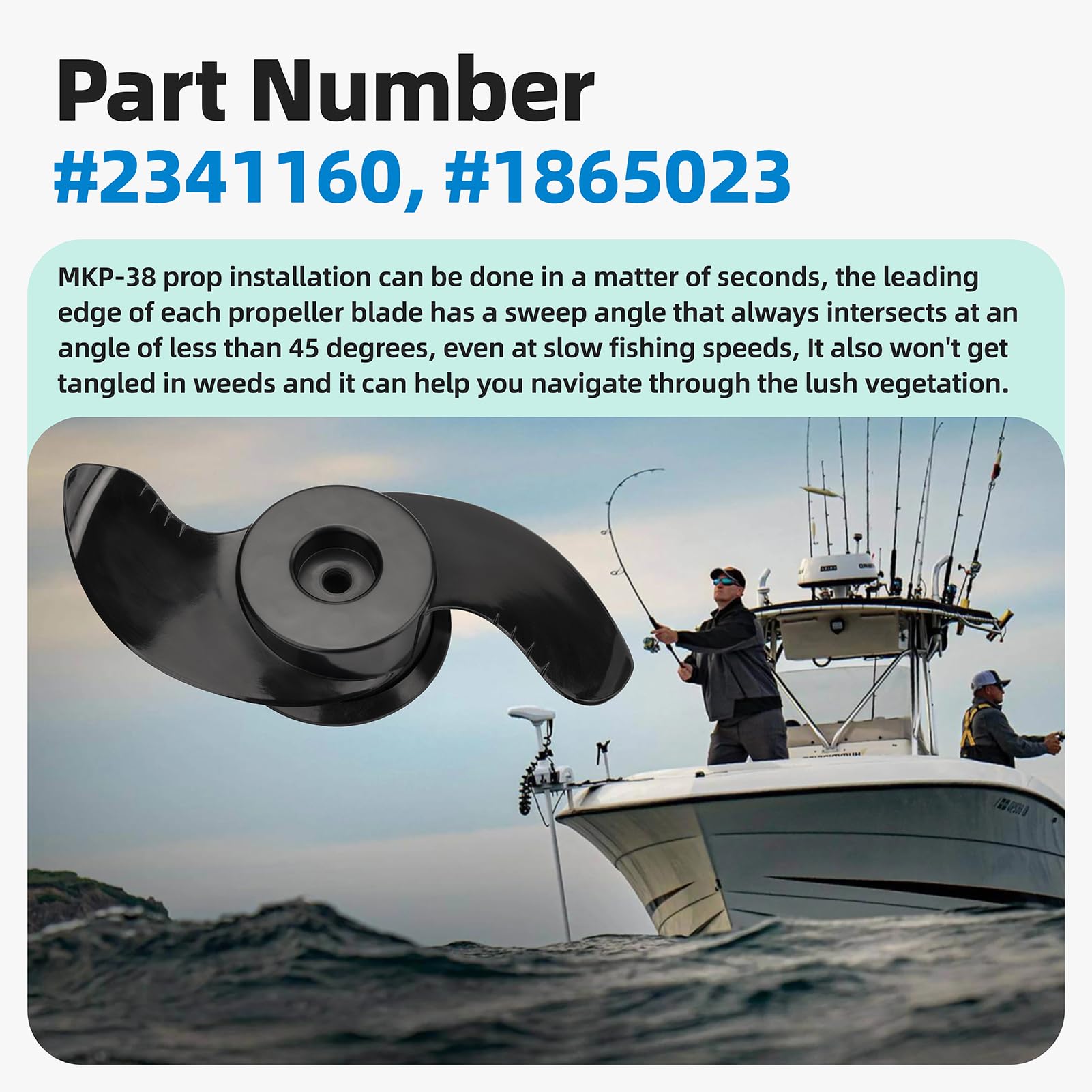【Excellent Design】MKP-38 trolling motor propeller, designed with swept-back and flared blades that wedge weeds away while conserving battery power, it helps you move through heavy vegetation even at slow speeds, it's a must-have for any angler who wants to navigate shallow water with ease.