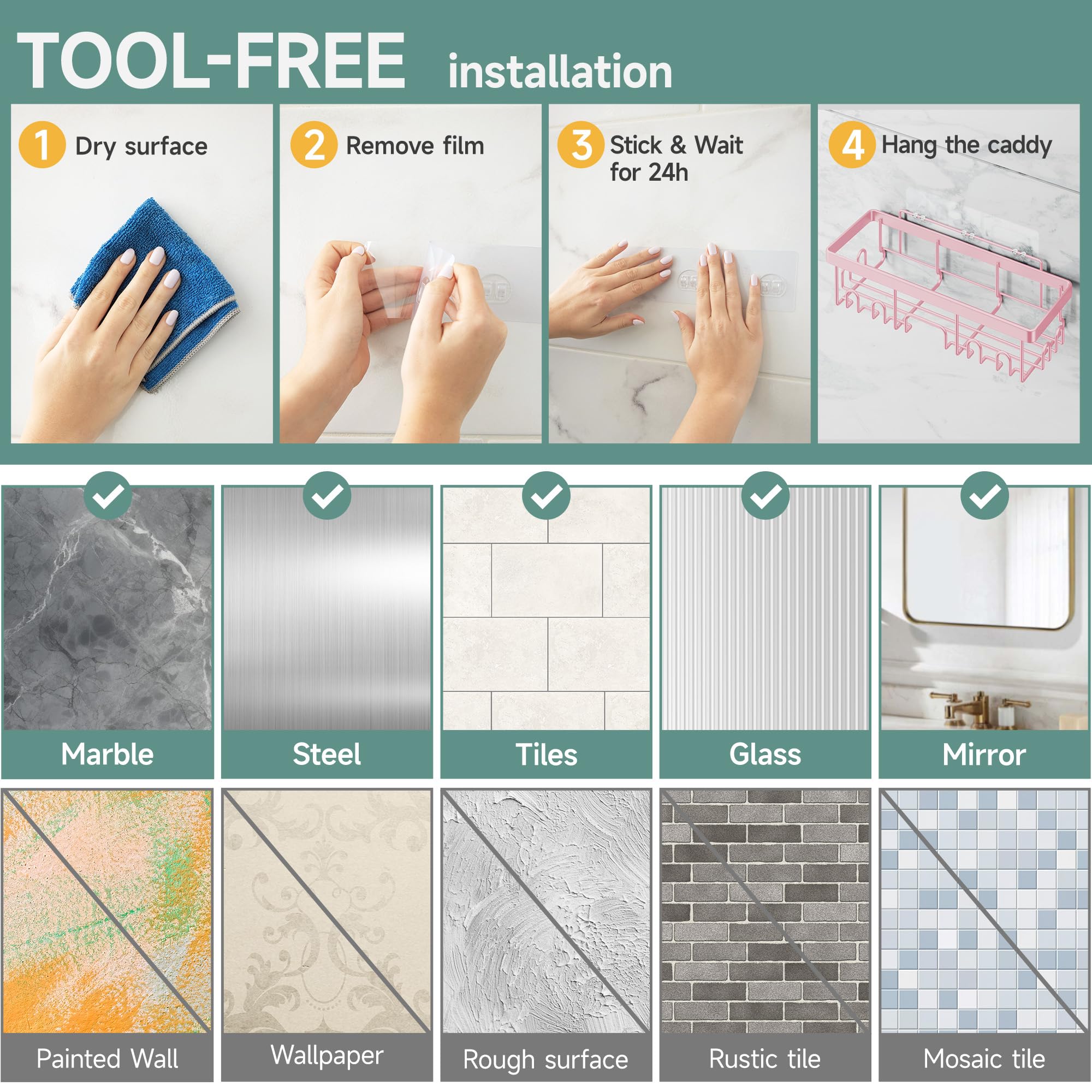 Easy, Tool-Free Installation: Enjoy a stress-free setup with our strong adhesives-no tools or drilling needed; just follow four simple steps for a secure fit that lasts
