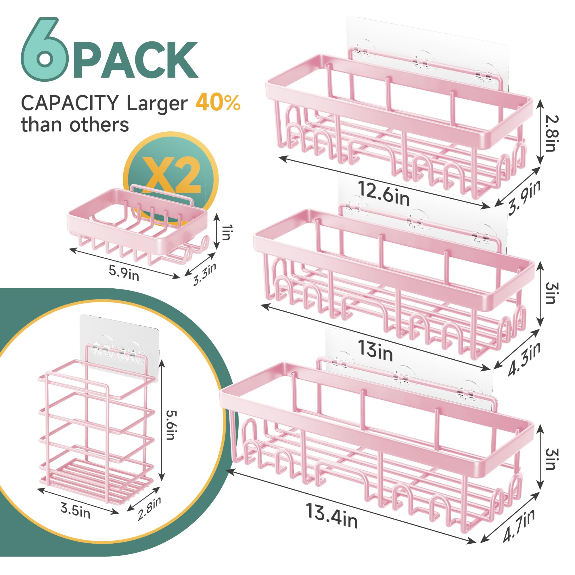 Comprehensive Organization: This 6-piece set includes large, medium, and small caddies, along with soap and toothbrush holders, providing versatile storage for all your shower essentials