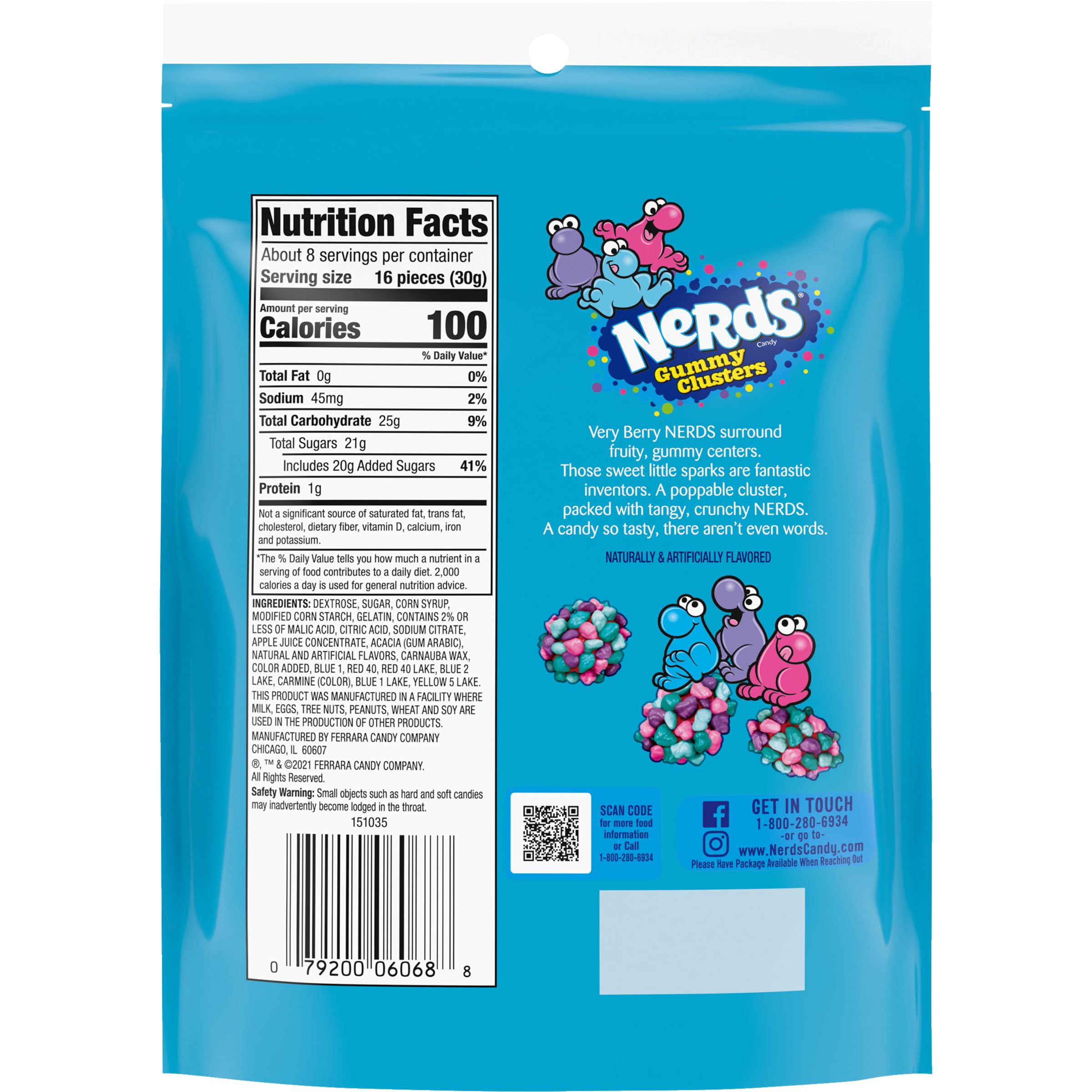 Crunchy, gummy, tangy — it's all coming together to provide a truly craveable experience in every bite of NERDS Very Berry Gummy Clusters. Candy lovers have been waiting for this one-of-a-kind poppable treat, with Very Berry NERDS candy surrounding a fruity gummy center. Experience the delectable candy revolution. NERDS Gummy Clusters candy deliver multiple textures and flavors, taking hungry fans on a taste-filled journey as they chew. This candy fuels fun for every occasion, so what are you waiting for? Haven’t we told you just enough about NERDS Gummy Clusters to convince you to treat yourself? Go ahead, buy it: NERDS Gummy Clusters. Give the kids the perfect treat for when they go back to school with these NERDS Gummy Clusters. These crunchy and gummy fruity candies are the perfect treat idea for when they come home after a long school day. NERDS Gummy Clusters are part of the NERDS family. Choose from NERDS Gummy Clusters to NERDS Rope Candy or our crunchy Big Chewy NERDS, with flavors ranging from sweet to tangy. Try out all the varieties! NERDS take you on a sensory adventure. Everyone remembers the out-of-the-world experience of their first taste of NERDS.