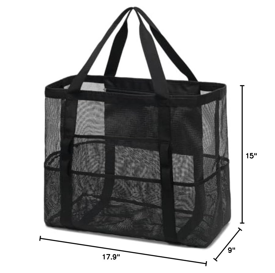 Description Fammart Mesh Beach Bag, Large Beach Tote with Zipper Pocket, Toys Pool Bag for Family Travel Vacation Cruise Essentials