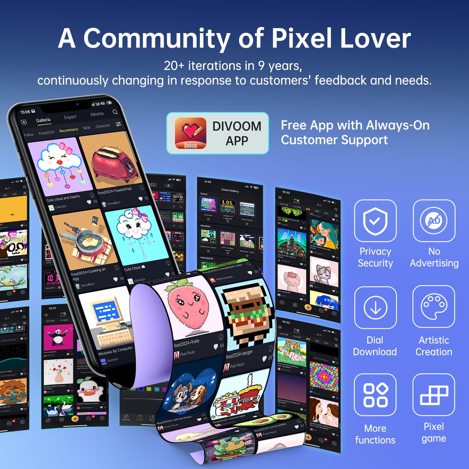 【Pixel Art Playground】 -- Unleash your imagination and create personalized pixel art. With a vast library of millions of pixel art designs updated daily, you can effortlessly customize your display with animated graphics, text, and more, it's a canvas that reflects your unique style and creativity. The Times Gate is more than just a cool RGB led display, it's a symbol of the seamless integration of life and technology.