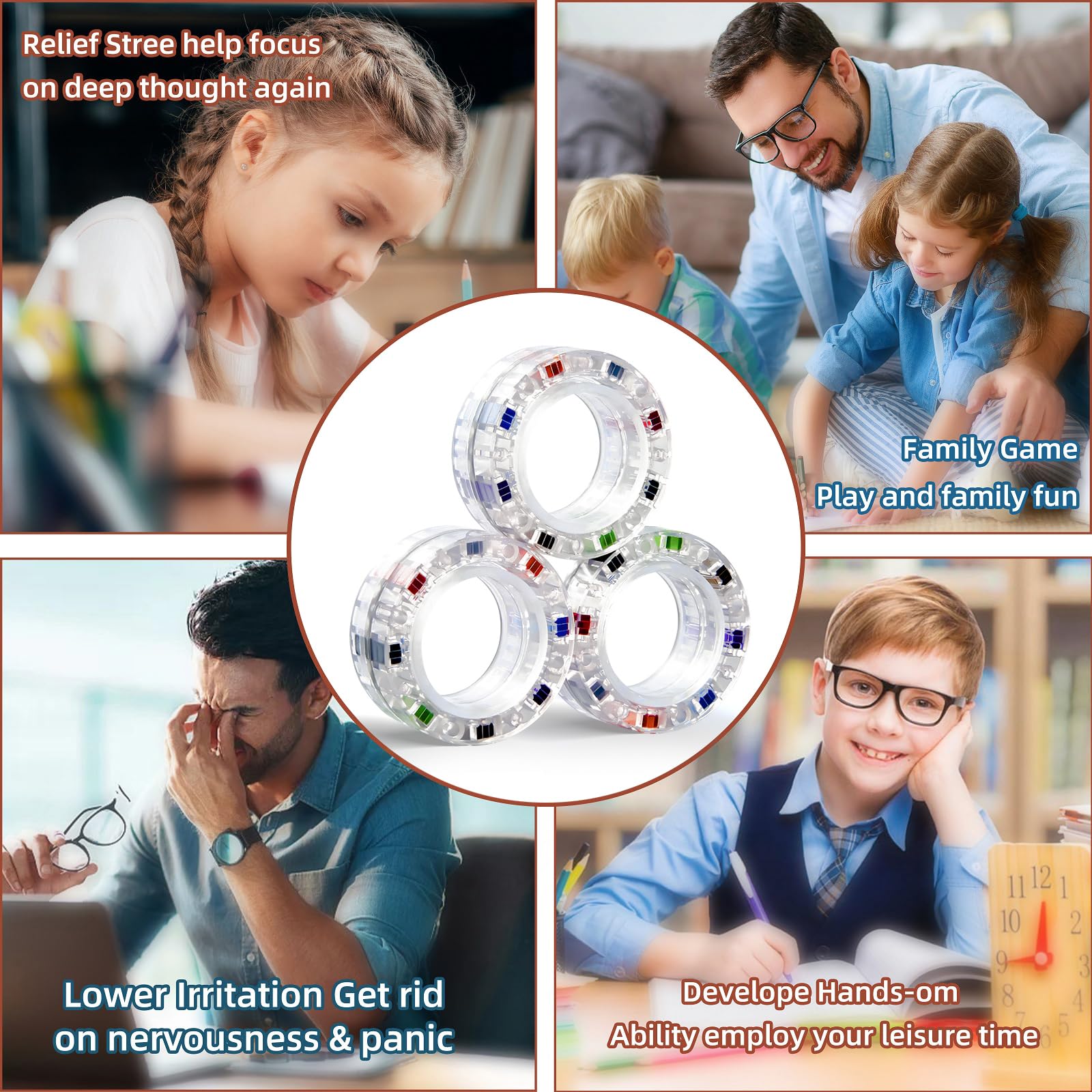 Fidget Rings for Anxiety: 3Pcs colorful magnetic rings fidget toys. No oil or maintenance needed. Light weight and easy to carry, rounded smooth surface can protect fingers from scratches.