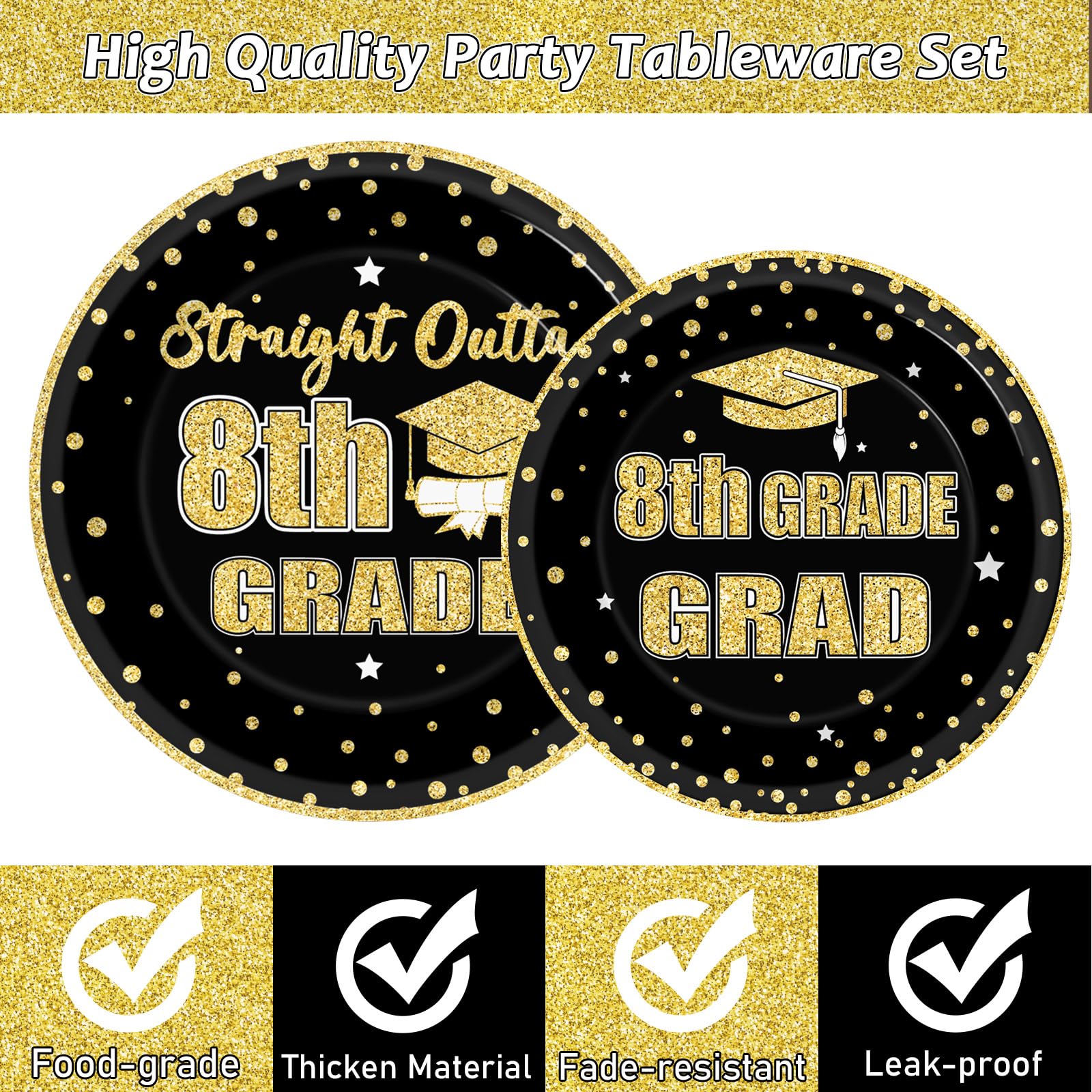 Wide application: the graduation element make the dinnerware set suitable for 8th grade graduation theme party, school dinners and family party. And they can be used with other graduation supplies.