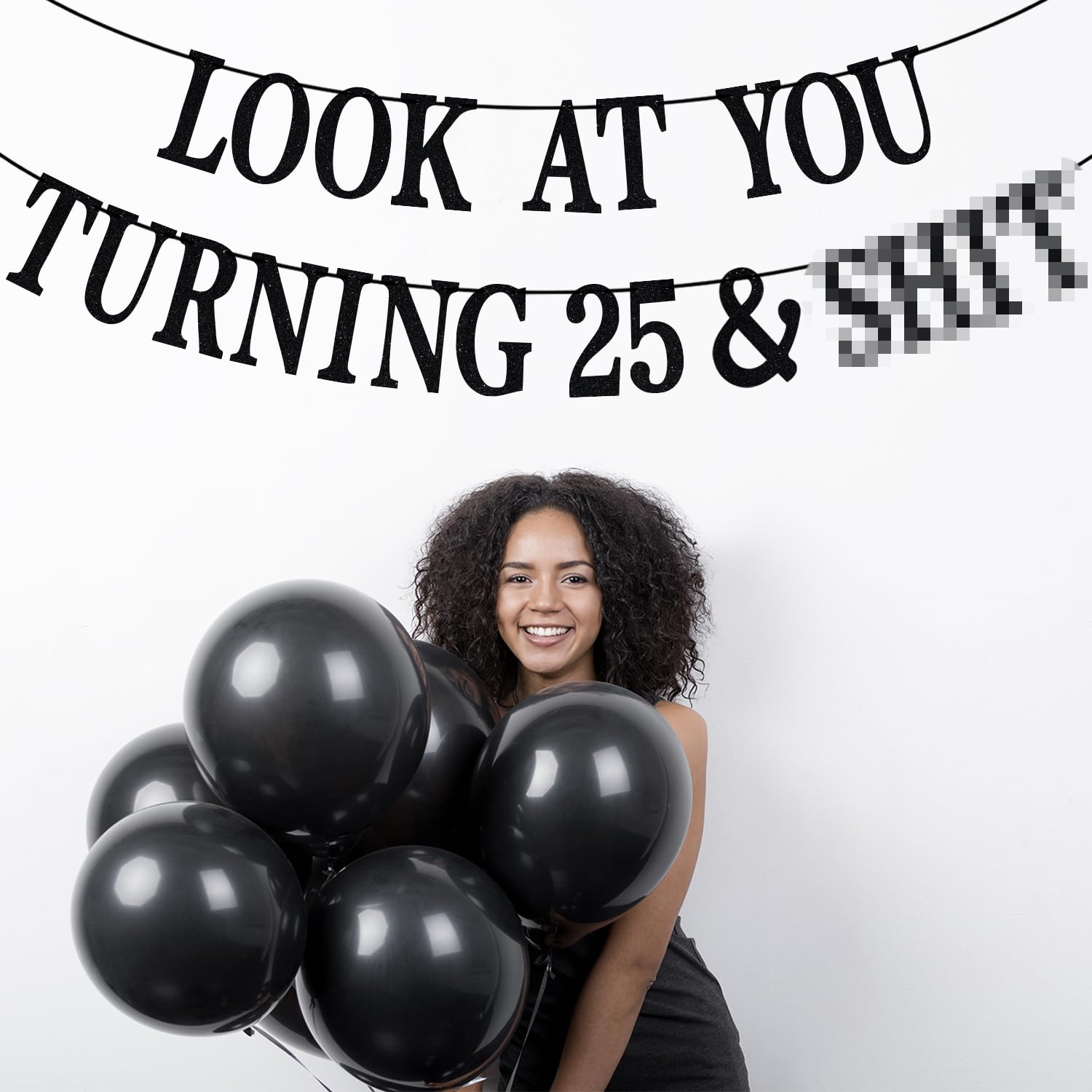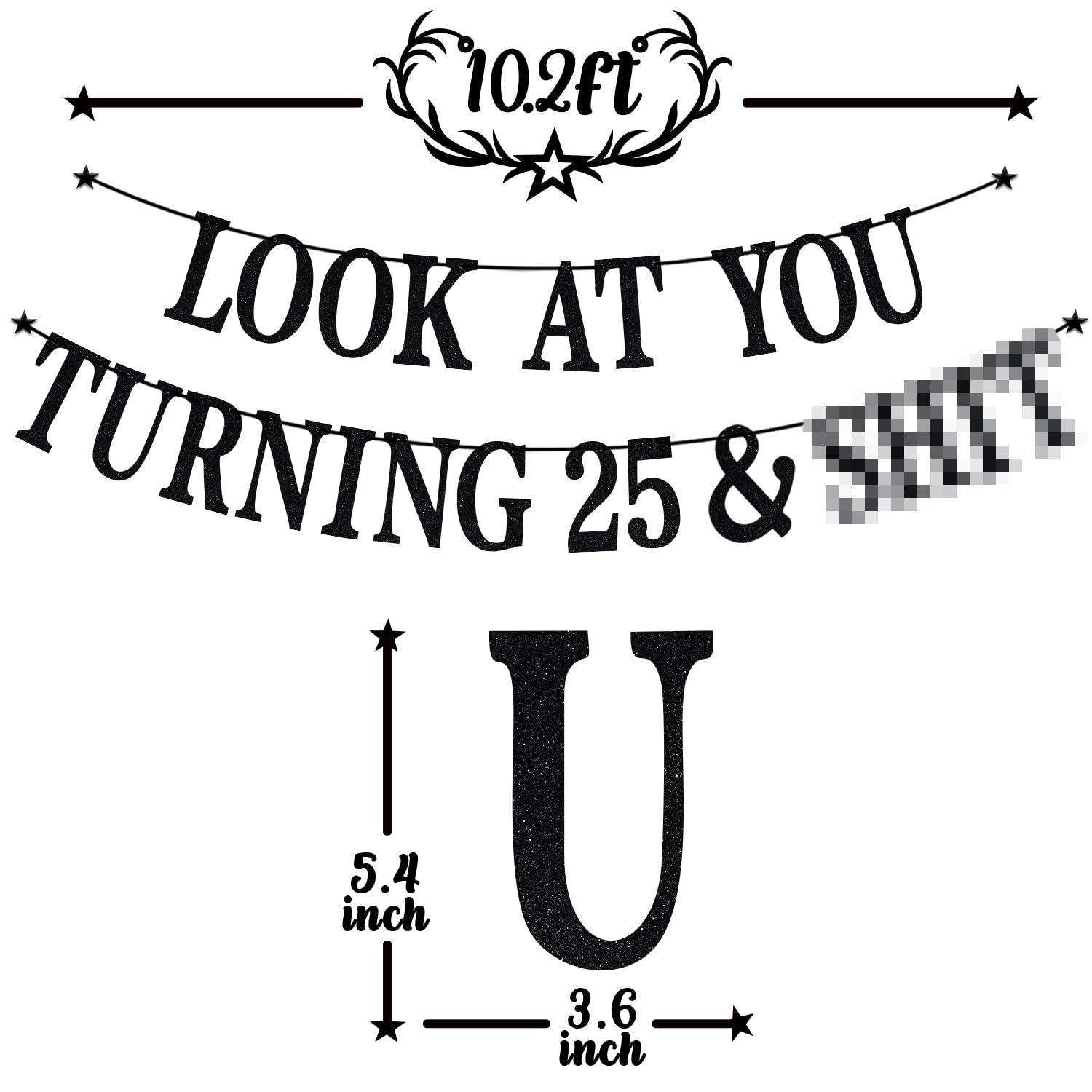 Received included: Letter cards spelling the phrase "Look at You Turning 25 & Sh*t". Awesome decorations: It is very suitable for the 25th Birthday party. Special party decorations can add an enjoyable and active atmosphere to these scenes, leaving a happy and unforgettable memory. High quality: Banners are made of glitter premium cardpaper. They are rigid and reusable. Easy to DIY: The card and the rope are separate, you only need to spend a little time to assemble. Choose us and believe us: We support the concept of customer first and product first. If the quality or damage occurs during transportation, we will solve it.