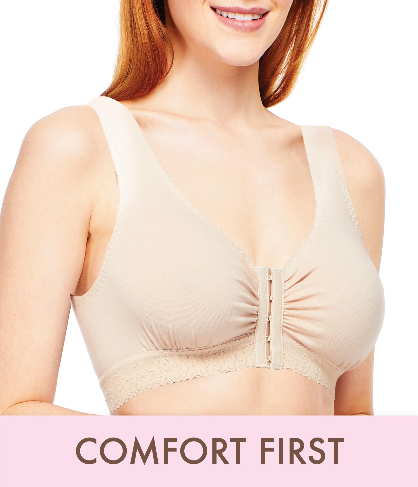 The Original Full-Freedom Cotton Bra, designed for light to medium support, fits B, C and D cups. Un-padded with front hook and eye closure for easy-off convenience