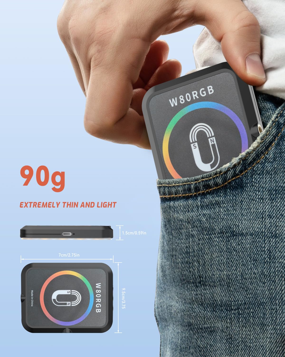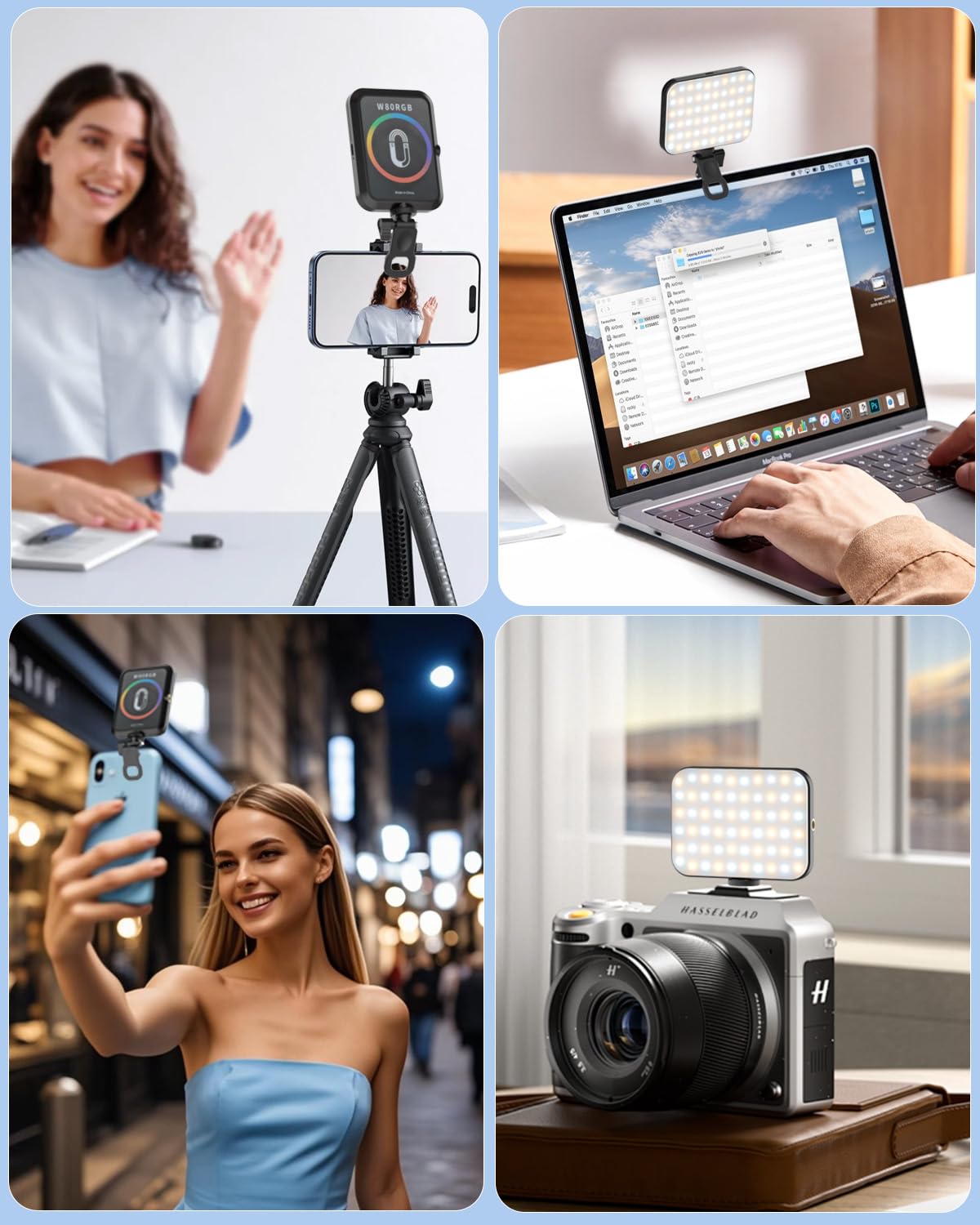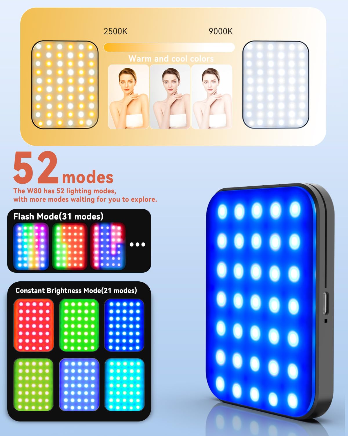 95 RGB LED Best Light Effect: Built in double-layer soft light cover, the light is uniform and soft, avoiding glare; Supports infinite adjustment of color temperature from 2700K to 6500K, with one click switching between cool and warm light, meeting the needs of natural skin tone restoration or atmosphere creation.