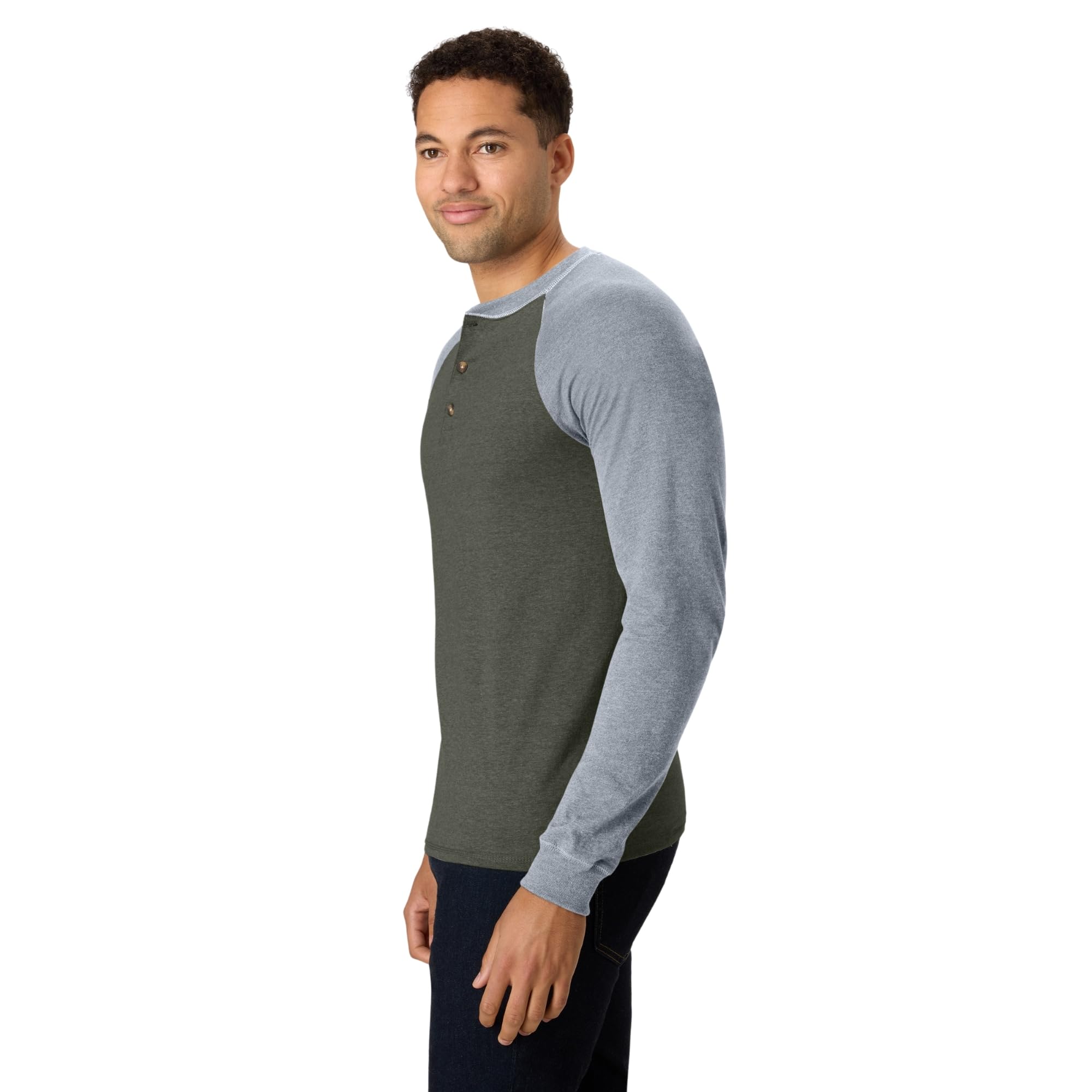 Description Legendary fabric. Classic Henley style. Easygoing comfort. Why not check all the boxes with a Hanes® BeefyT® Men’s Long Sleeve Henley? Crafted from the famous heavyweight cotton fabric that set the standard for t-shirt quality a half-century ago, Hanes Henleys for men boast the same sturdy details as the iconic Hanes t-shirts: Double-needle stitching, high-density stitch count, and shoulder-to-shoulder taping. What’s new is a three-button placket, traditional round collarless neckline, and long sleeves. So soft, you will want to wear it on repeat, these classics look great paired with jeans, khakis, or shorts.