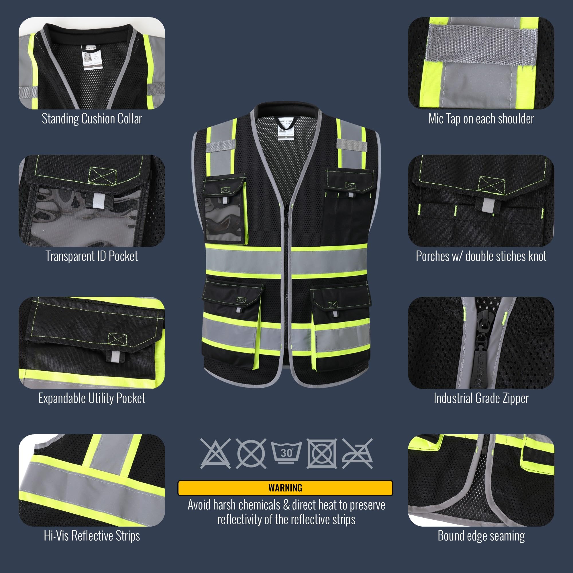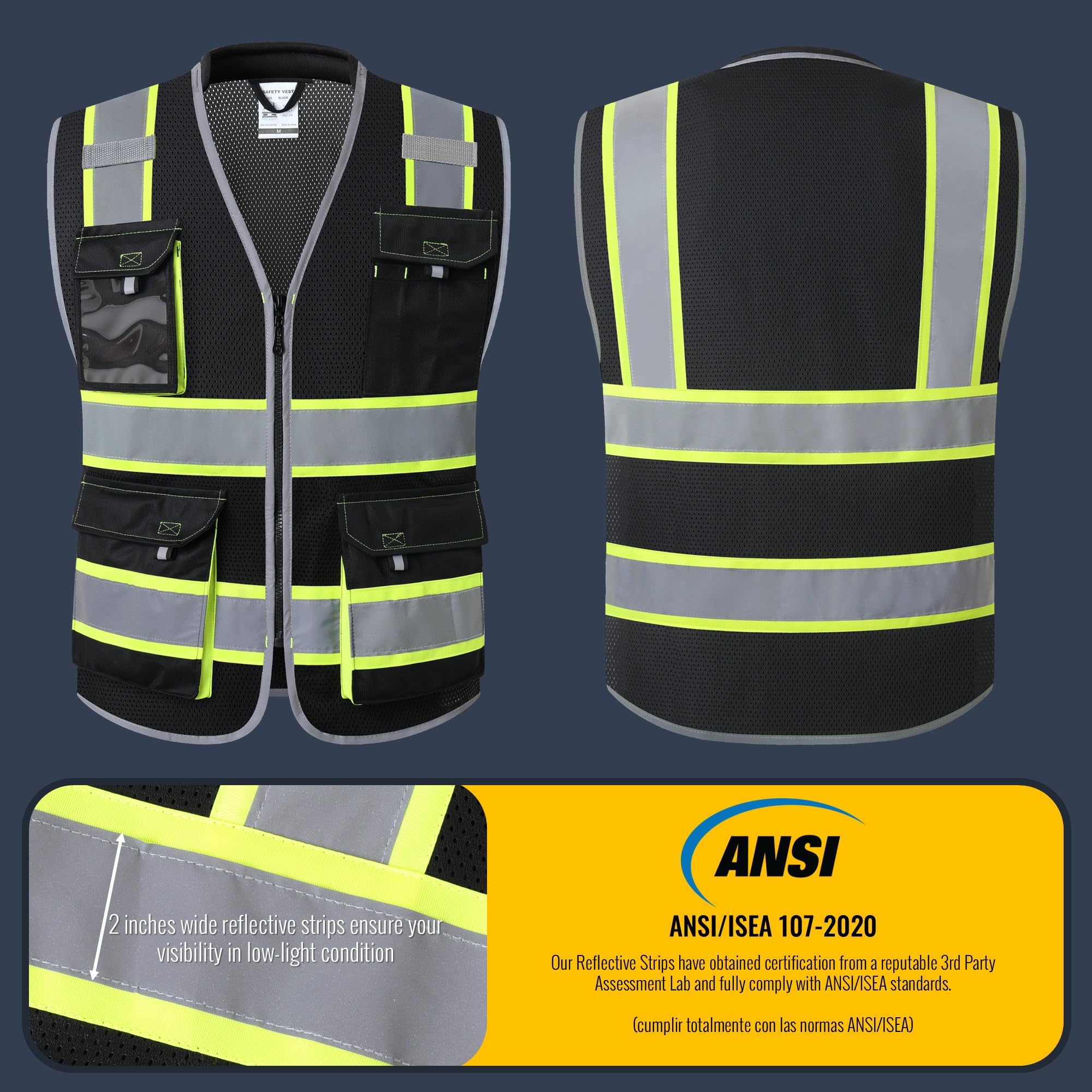 Reminders: While the HV Vest complies with ANSI/ISEA safety standards and is suitable for general applications, it is not designed for Anti-Static or FR standards. Please refer to the Size Chart for accurate measurements. In case of any manufacturing defects, please take photos and contact us for an exchange or refund. Add to Cart now for a risk-free purchase.