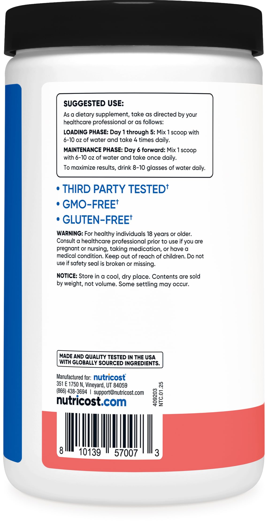 NSF Certified and GMP Compliant: Rest assured of the product's quality, as it is manufactured in an NSF certified and GMP compliant facility, meeting stringent industry standards.