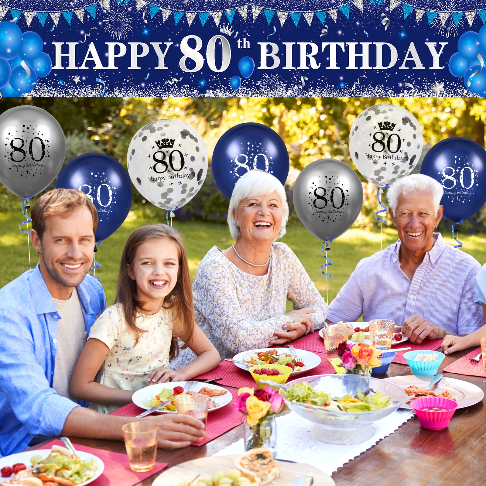 Easy to Use:Navy blue happy 80th birthday yard banner comes with a long rope, and there are 4 copper buckles in the corner. it's convenient for you to use. These latex 80th birthday balloons support air or helium. You can tie these balloons to tables and chairs, hang them on ceilings, walls, gardens, tables, and branches, or use them to decorate party cake tables. Notes: Please do not overfill the balloons and keep them away from heat or pointed object