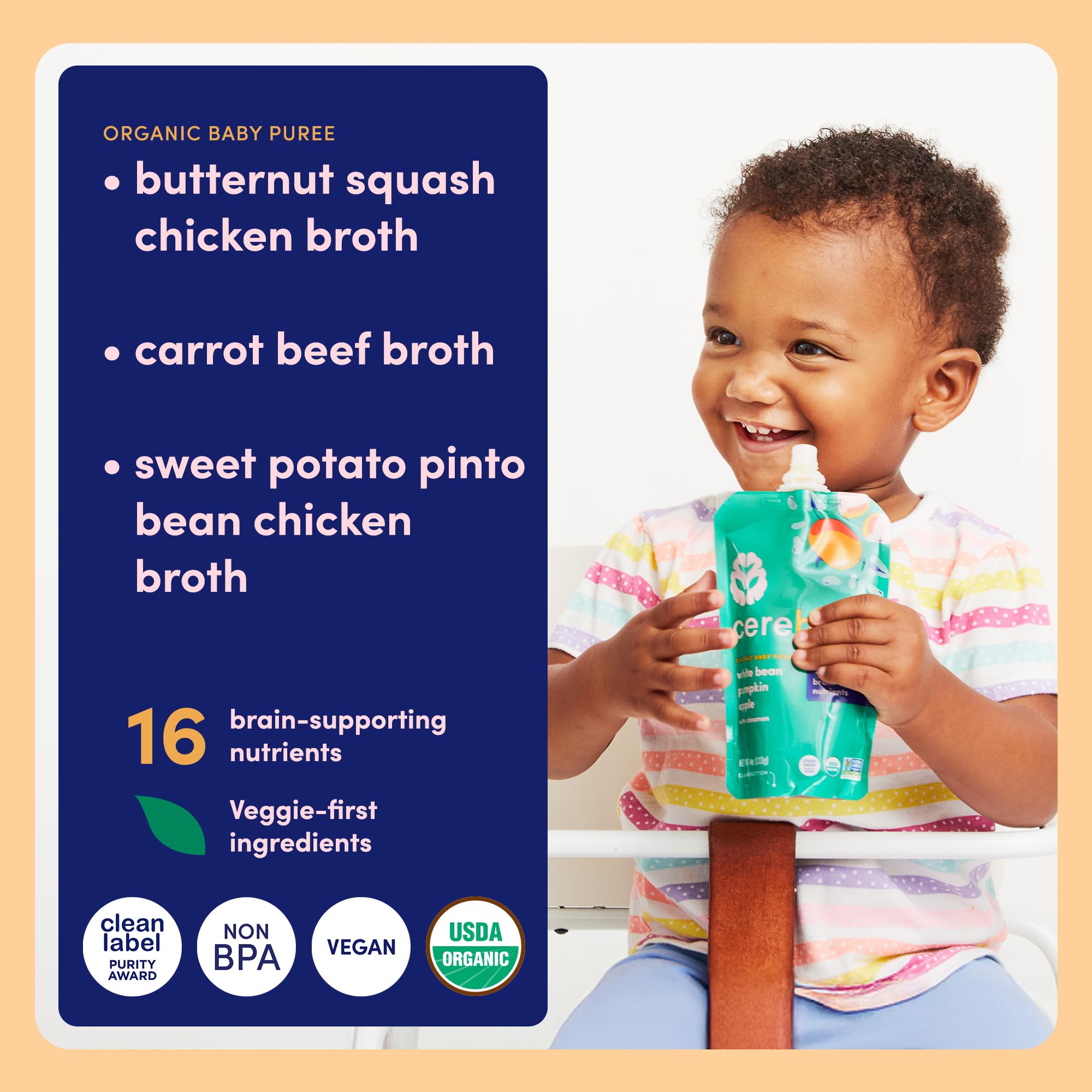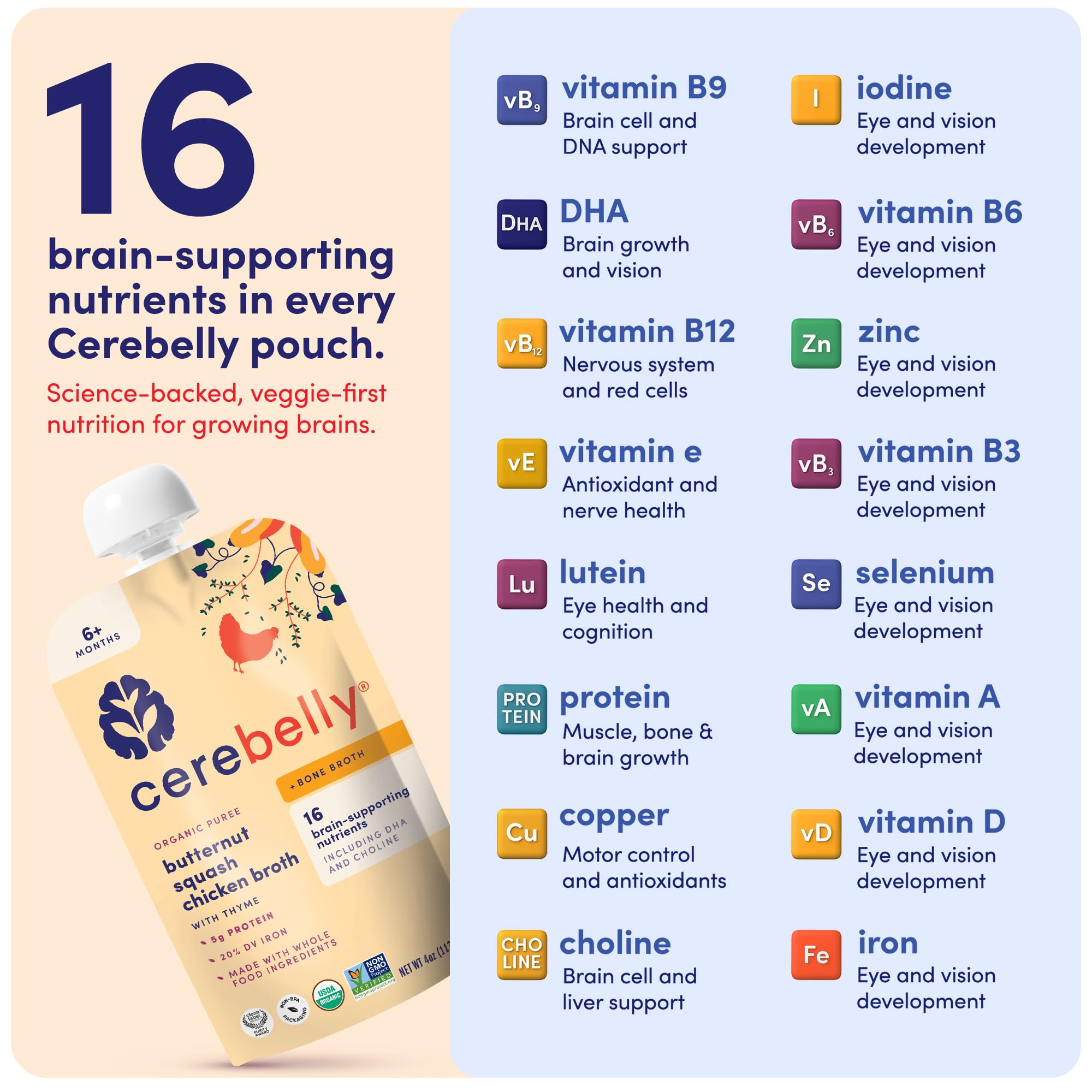 16 BRAIN-SUPPORTING NUTRIENTS – Only baby food with 16 nutrients for development, including potassium, iron & vitamin D