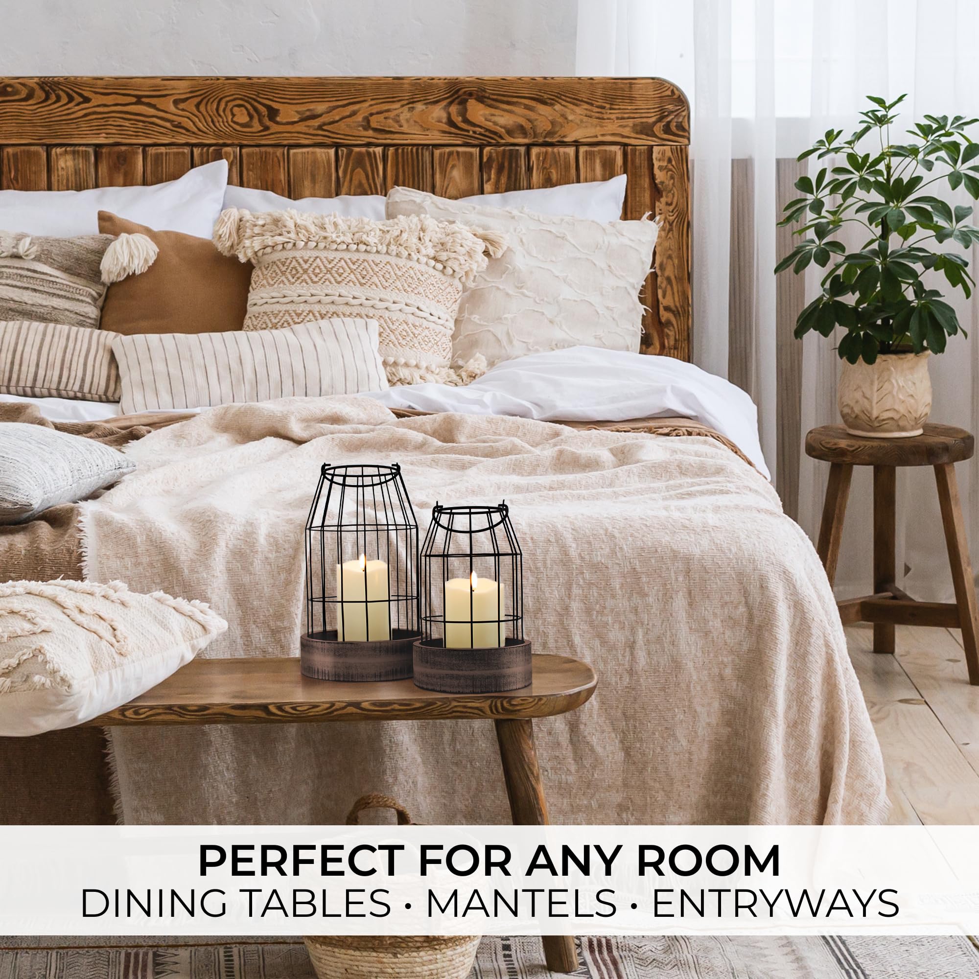 Simply Charming - Anywhere In Your Home: The farmhouse metal lantern set makes for a lovely decor highlight around the house - use it as centerpiece on your dining table, as fireplace mantle decor or even use it to upgrade the decoration at a party or wedding to the next level