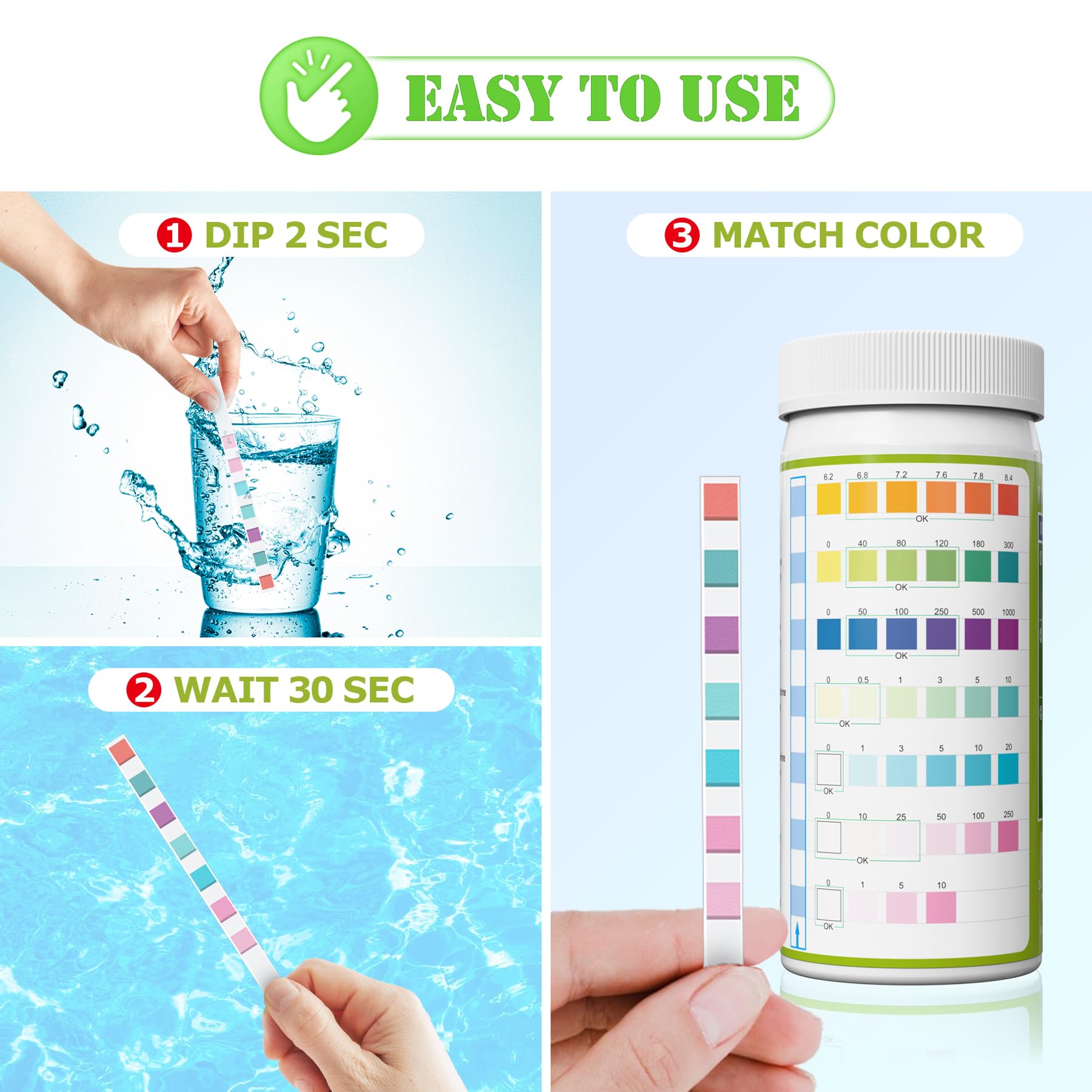 Easy Rapid Accurate Testing: Our test strip is easy to use, with just 3 steps to get lab-grade accurate results in 30 seconds. Our test strips use high-sensitive materials to ensure that each testing result is accurate and reliable, helping you manage your aquarium water at a good level