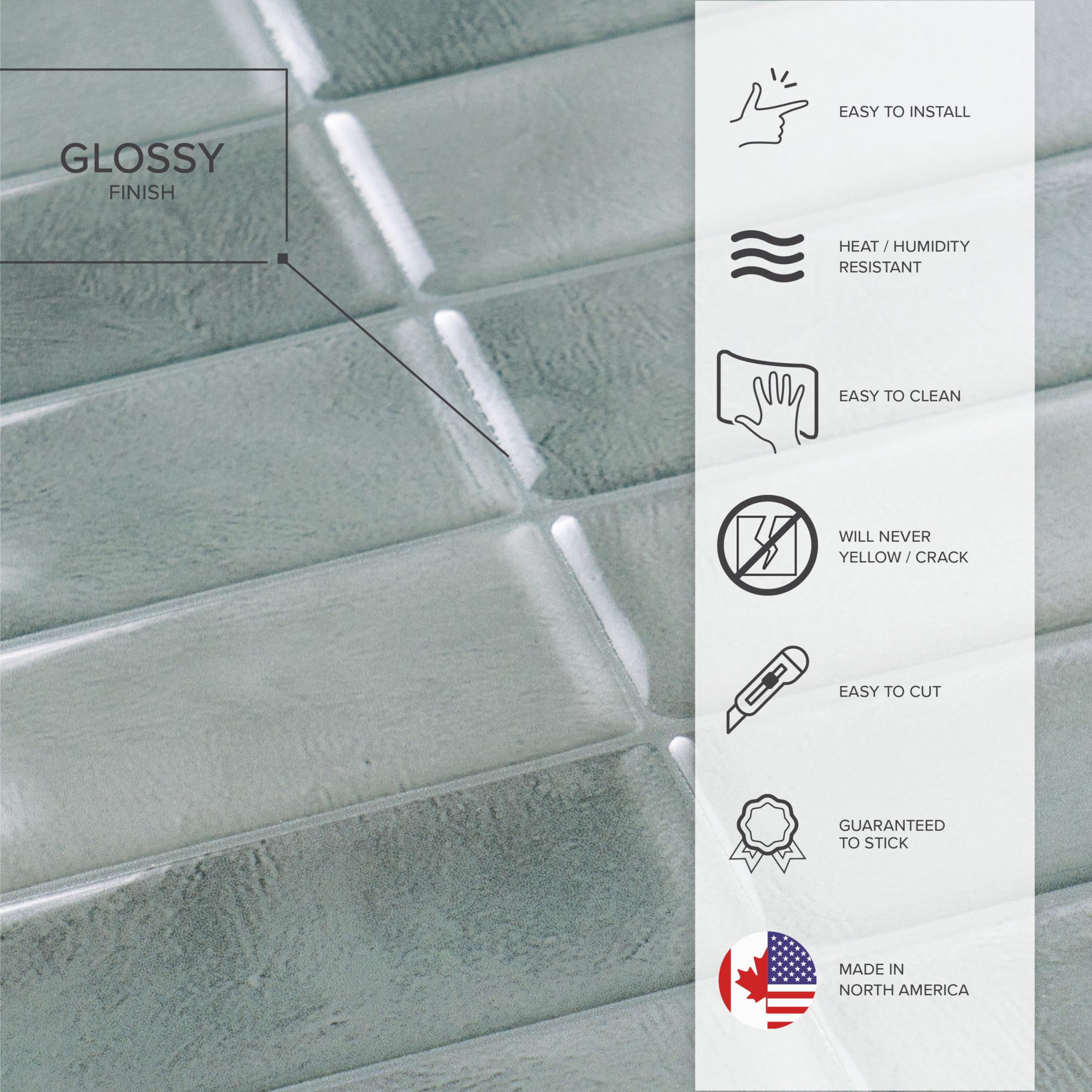Lasting style – premium look with water & heat resistance. Our peel and stick kitchen tiles deliver a high-end, authentic finish—thanks to our patented Gel-O technology and exclusive Smart-Bond adhesive. No vinyl, no yellowing, no warping. Smart Tiles are water resistant, humidity-proof, and heat resistant, making them ideal for kitchen splashbacks, bathroom walls, or any high-moisture area. Easy to clean, always radiant.