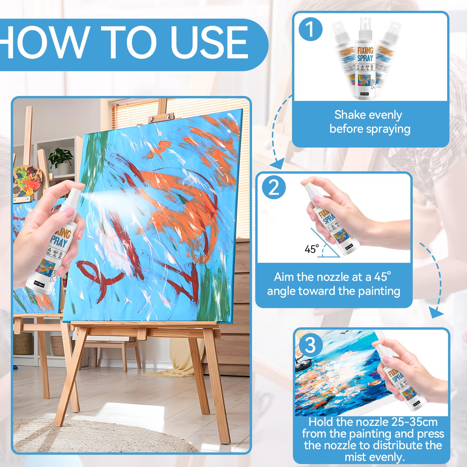 Long-Lasting Protection: Professional film-forming technology the fixative spray for pencil drawings can form a transparent protective layer to prevent pigment fading and pastel painting from fading, ensuring your artwork lasts longer.