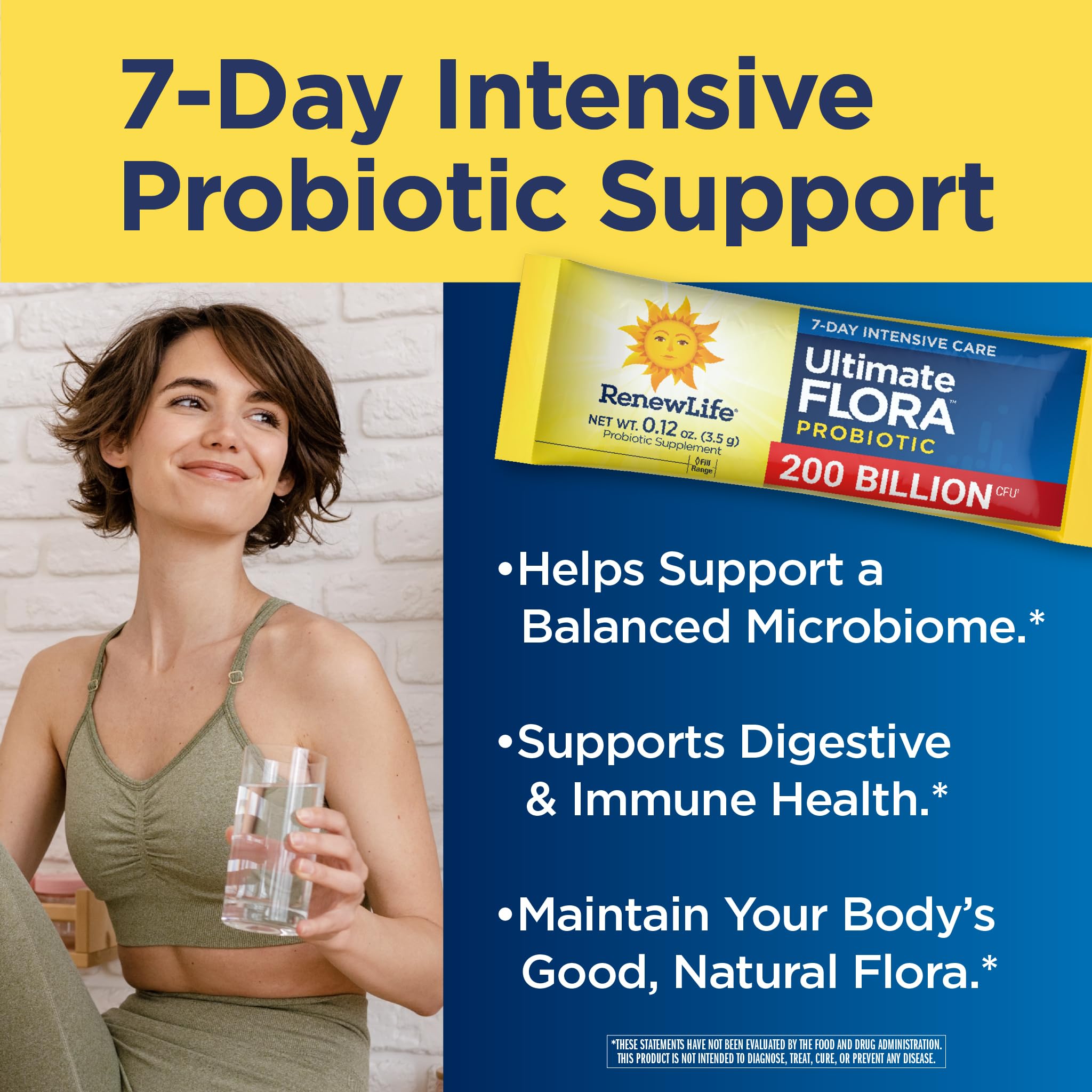 Ultimate Flora Probiotic Powder 200 Billion CFU: Delivers advanced digestive and immune support through a powerful 7-day supply of single-serve packets.*