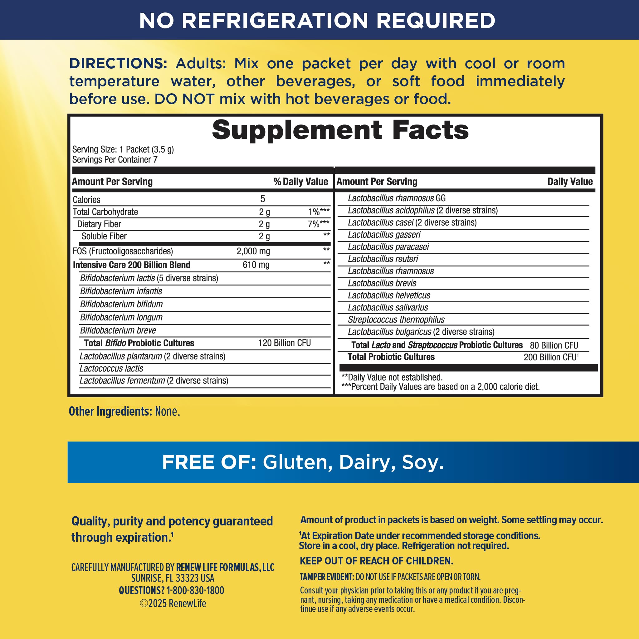 Renew Life Ultimate Flora Probiotic Powder 200 Billion CFU | 7 Packets | Digestive Health | Immune Health | Dairy Free