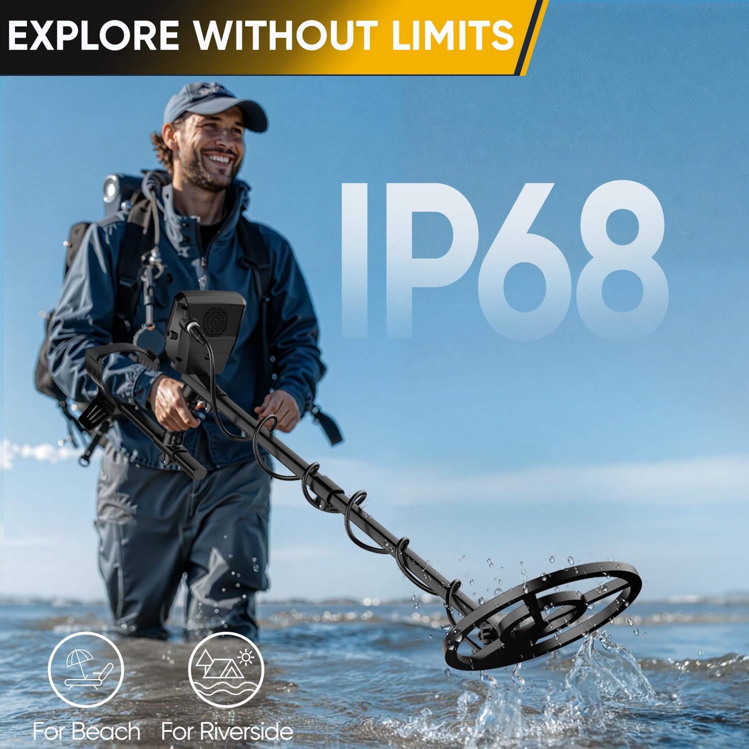 IP68 Waterproof Coil: 10-inch waterproof coil performs well in shallow water. Perfect for beach, riverside, and outdoor searches. Note: the control box is not waterproof.