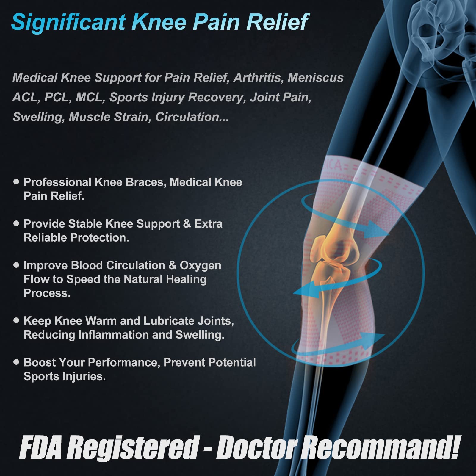 INSTANT PAIN RELIEF— Innovative functional fabric has the effect of keep knee warm and reduce stiffness, inflammation and swelling, speed oxygen flow. This knee brace disperse the pressure and improves circulation around knee area, wrap around patella to enhance the stability of kneecap and relax tendons, prevent muscle strain. Relieve ACL, MCL, PCL pain, prevent ligament injury, meniscus tear, swelling, inflammation and so on. Class 2 Medical Device—Doctor Recommand!