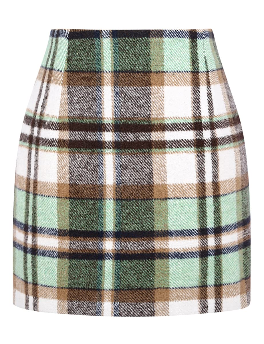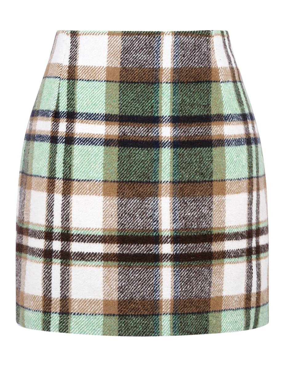 Style: Casual slim fit bodycon flannel plaid mini skirts for junior/lady