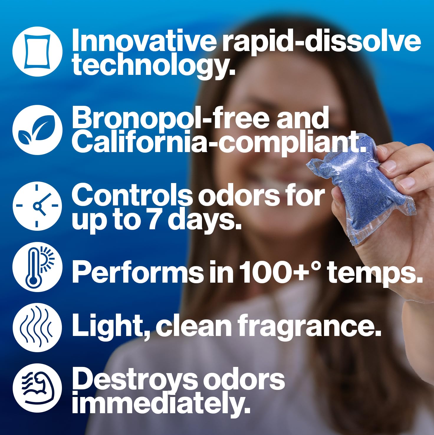 Tired of battling unpleasant odors and struggling with clogged black tanks? Look no further than Porta-Pak RV and marine holding tank deodorizer, your ultimate solution for a pristine RV or marine experience. Porta-Pak RV and marine toilet deodorizer is the ultimate marine toilet cleaner, camper tank deodorizer, portable toilet deodorizer, and black tank deodorizer for RVs and boats. Our powerful formula not only controls odors but also efficiently breaks down paper and waste. Our innovative, water-soluble tabs are designed for your convenience. Simply drop one in, and Porta-Pak RV and boat toilet cleaner starts working immediately without any messy spills. Continued use helps pipes, valves, and seals stay working smoothly. Experience the delight of a fresh fragrance that transforms your space. Porta-Pak marine and RV black tank pods are environmentally responsible. Our formula breaks down naturally, ensuring you leave a minimal footprint on the outdoors. Don't let unpleasant odors and clogs spoil your journey. Upgrade your RV or boat with Walex Porta-Pak RV black holding tank deodorizer drop-ins. Take control of your tank, eliminate odors, and enjoy the outdoors to the fullest.