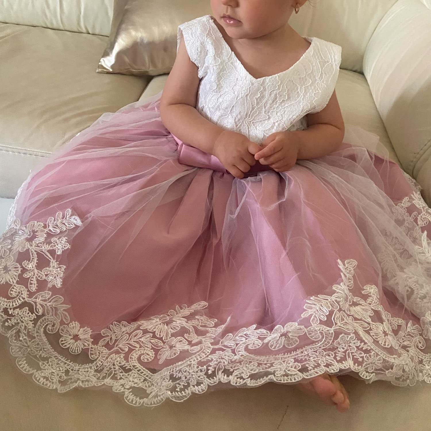 Would you want your princess freely dancing in the party and be more confidence ? This dress has 3D Flower Lace Embroidery Design and Big Lovely Bow In the Back. Soft and comfortable lining also better protecting the delicate skin of babies and girls, giving them snuggly mom-like protection. Your sweet baby will be the most shining princess in the audience. You will gain a ton of praise!