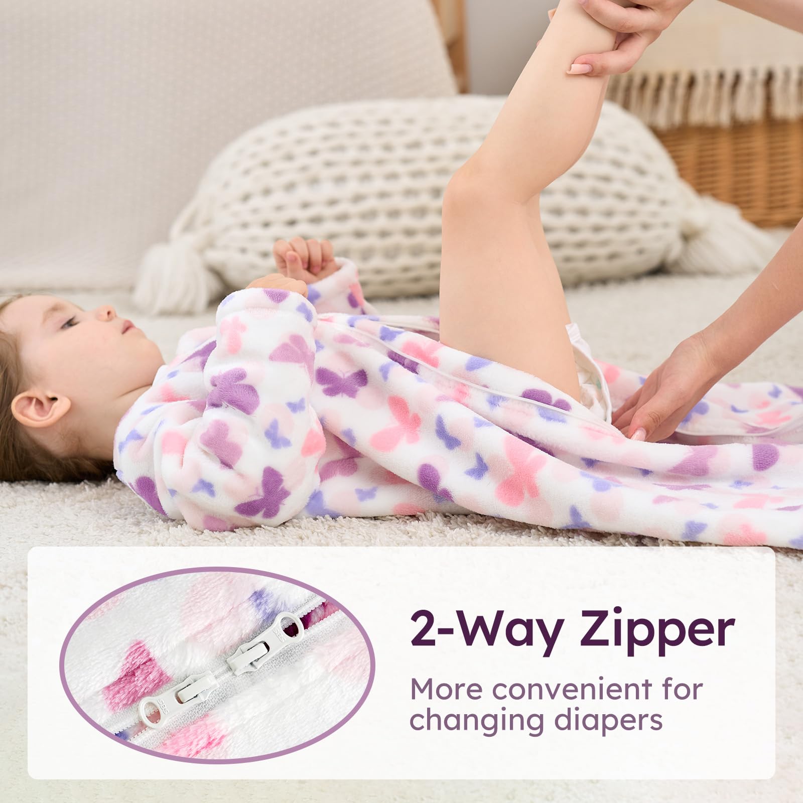 Hidden 2-way Zipper - Toddler sleep sack with zipper protection avoids scratching baby's delicate skin. Double zippers allow for effortless dressing and making nighttime changes easier. High-grade zippers of sleep sacks for baby glide smoothly without getting stuck, easily open and close.