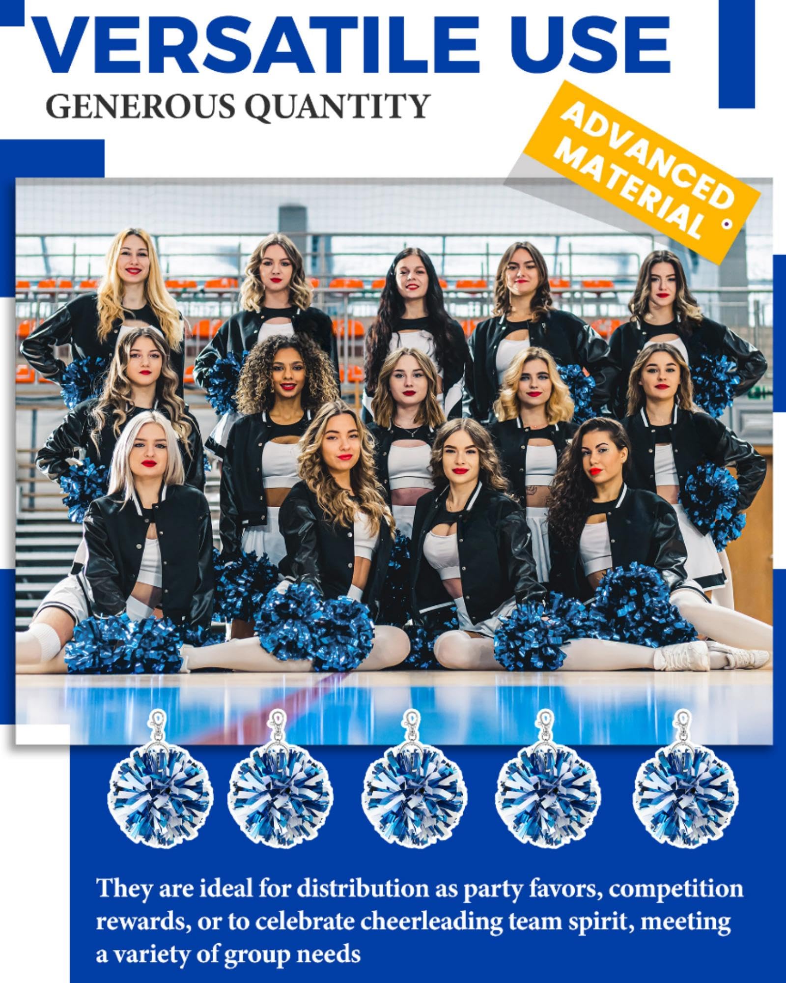 Group Spirit Booster: these bulk cheer keychains are perfect for cheerleading, dance performances, and sports events; Their blue and white design adds elegance and sophistication; They're also great for daily use and decorating rooms or Christmas trees