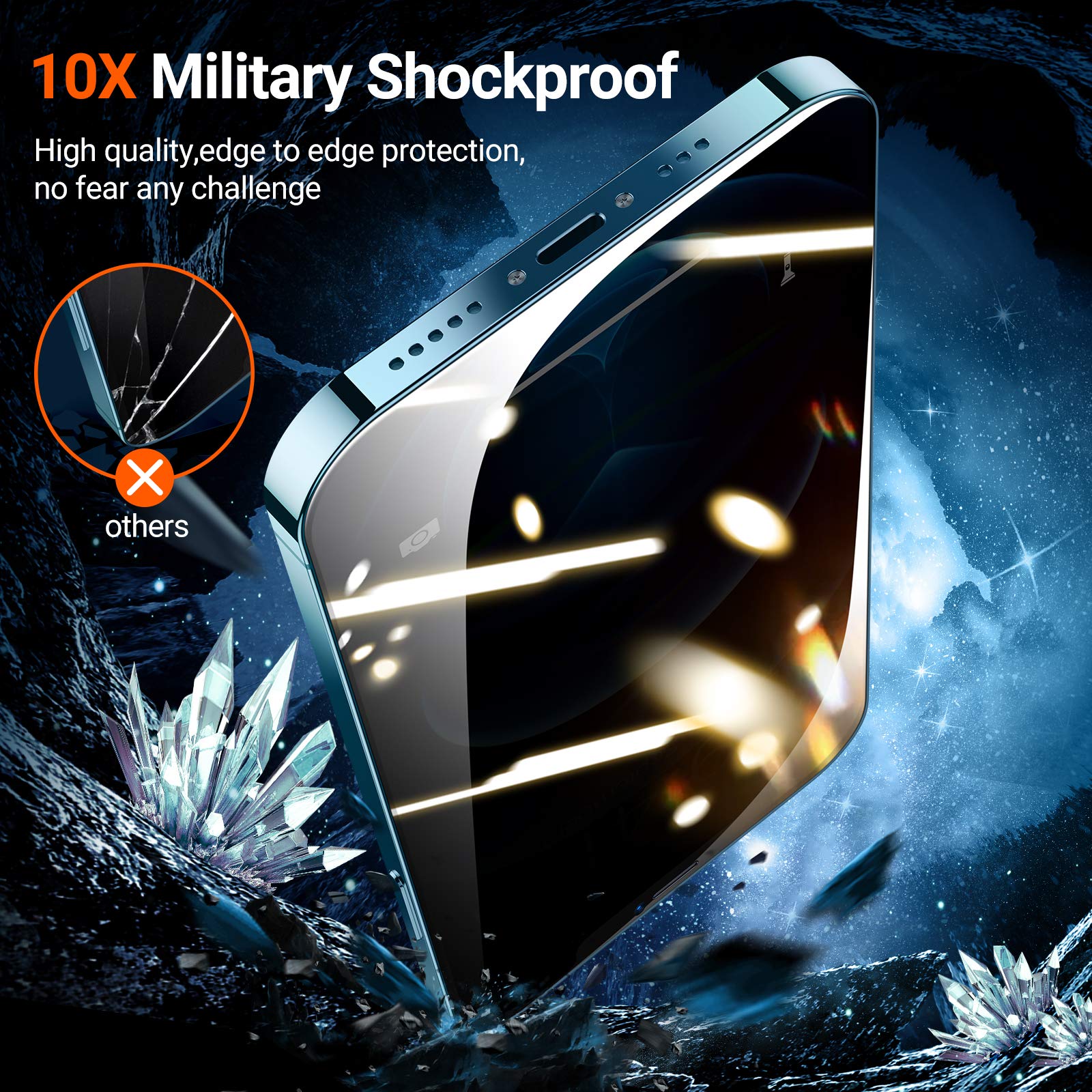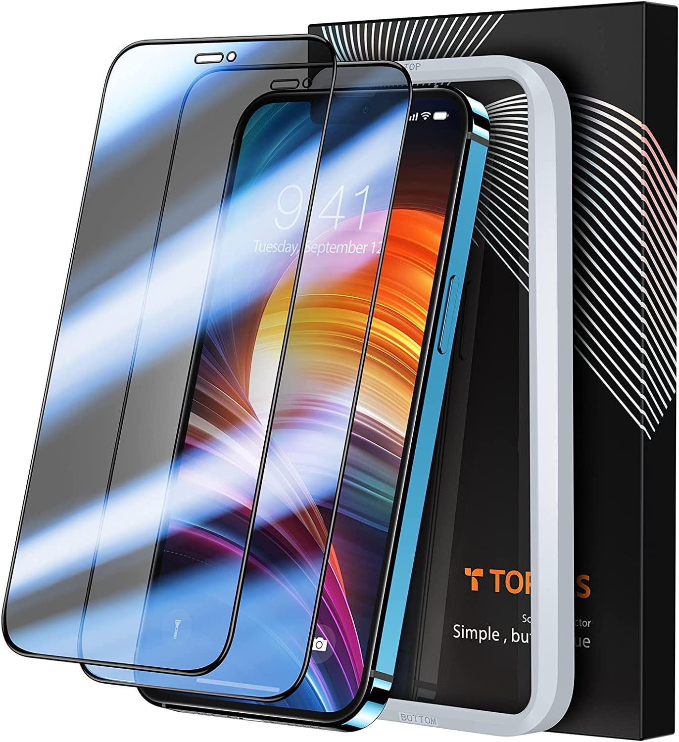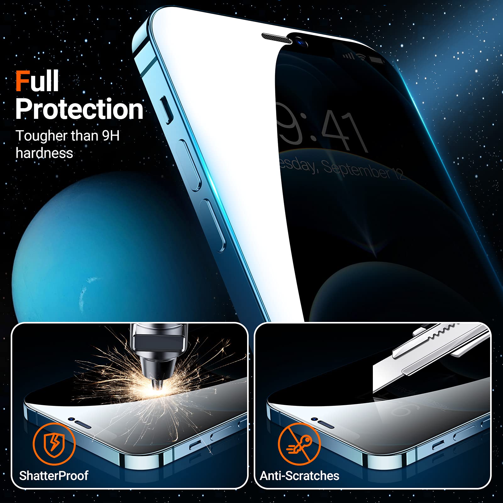 EDGE-TO-EDGE DESIGN: Unlike other protectors on the market, this iPhone 12 Pro Max Privacy screen protector covers the full screen, which offers better protection and a great look. The alignment tool in the package will help you install the glass with ease, with no bubbles, and no dust