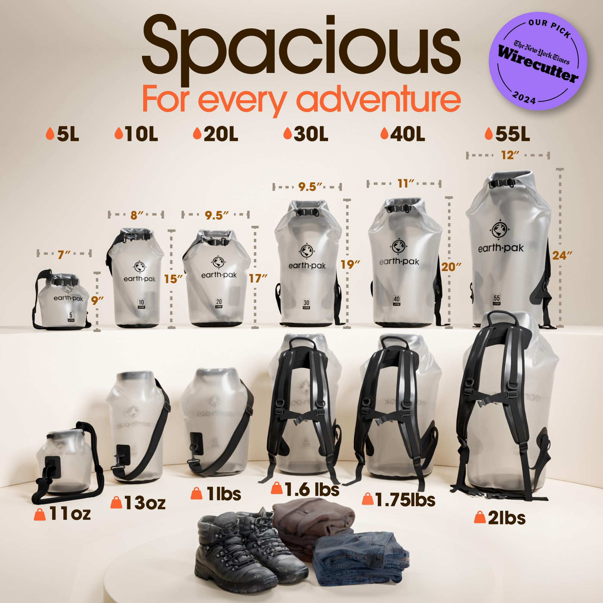 Top Rated By Wirecutter: Durable, reliable, and wallet-friendly are just a few of the reasons why The NY Times Wirecutter chose earth pak as one of the top dry bags of 2024! Our classic roll-top design keeps your contents dry and all our bags are all protected by a five-year warranty.