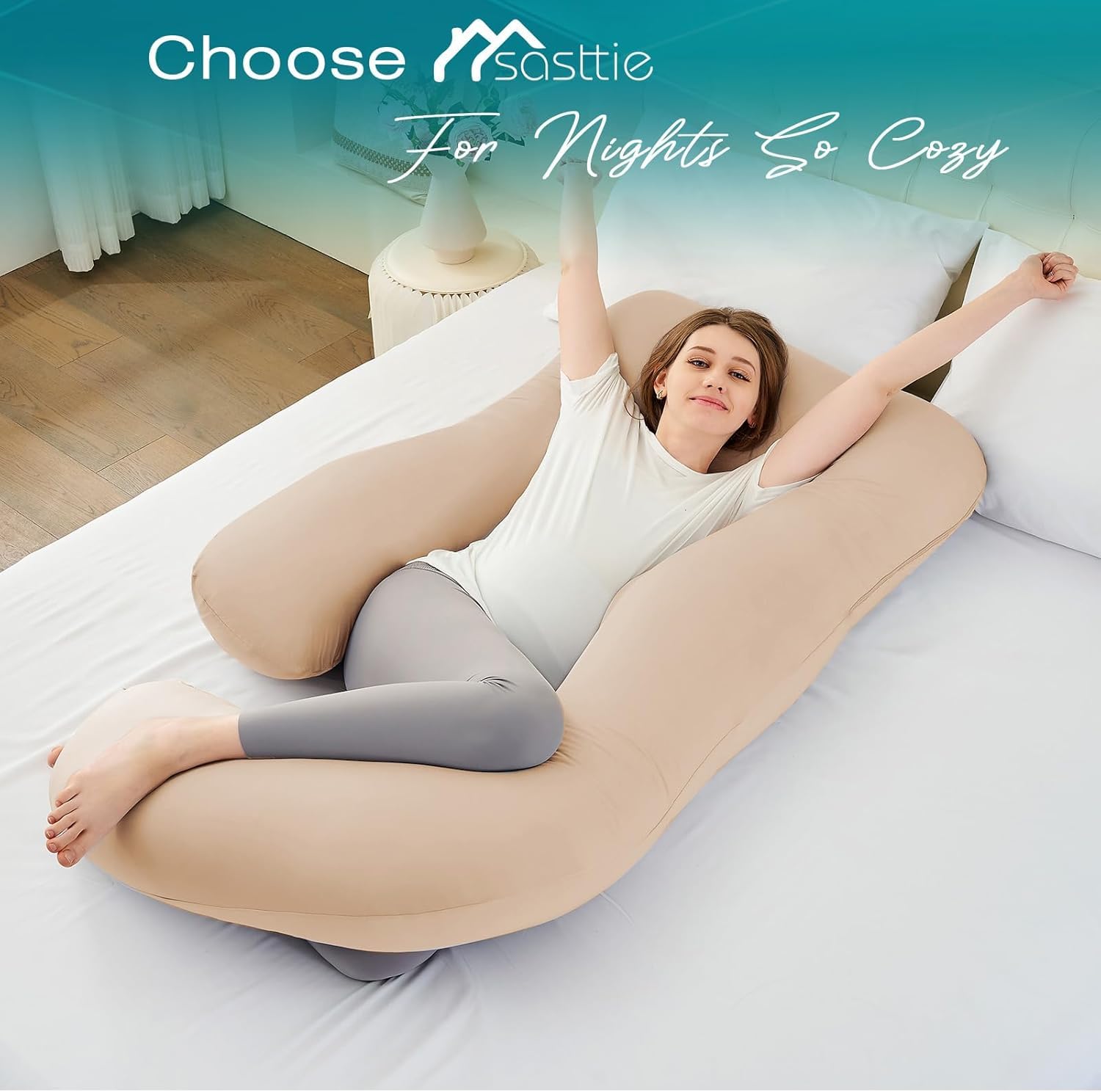 Upgraded U Shaped Pregnancy Pillows: Features an ergonomically designed shape, SASTTIE 4.0 U-shaped pregnancy pillow could fit your body well and provide firm support for your sore shoulders, numb arms, growing belly, tight back, as well as swollen feet