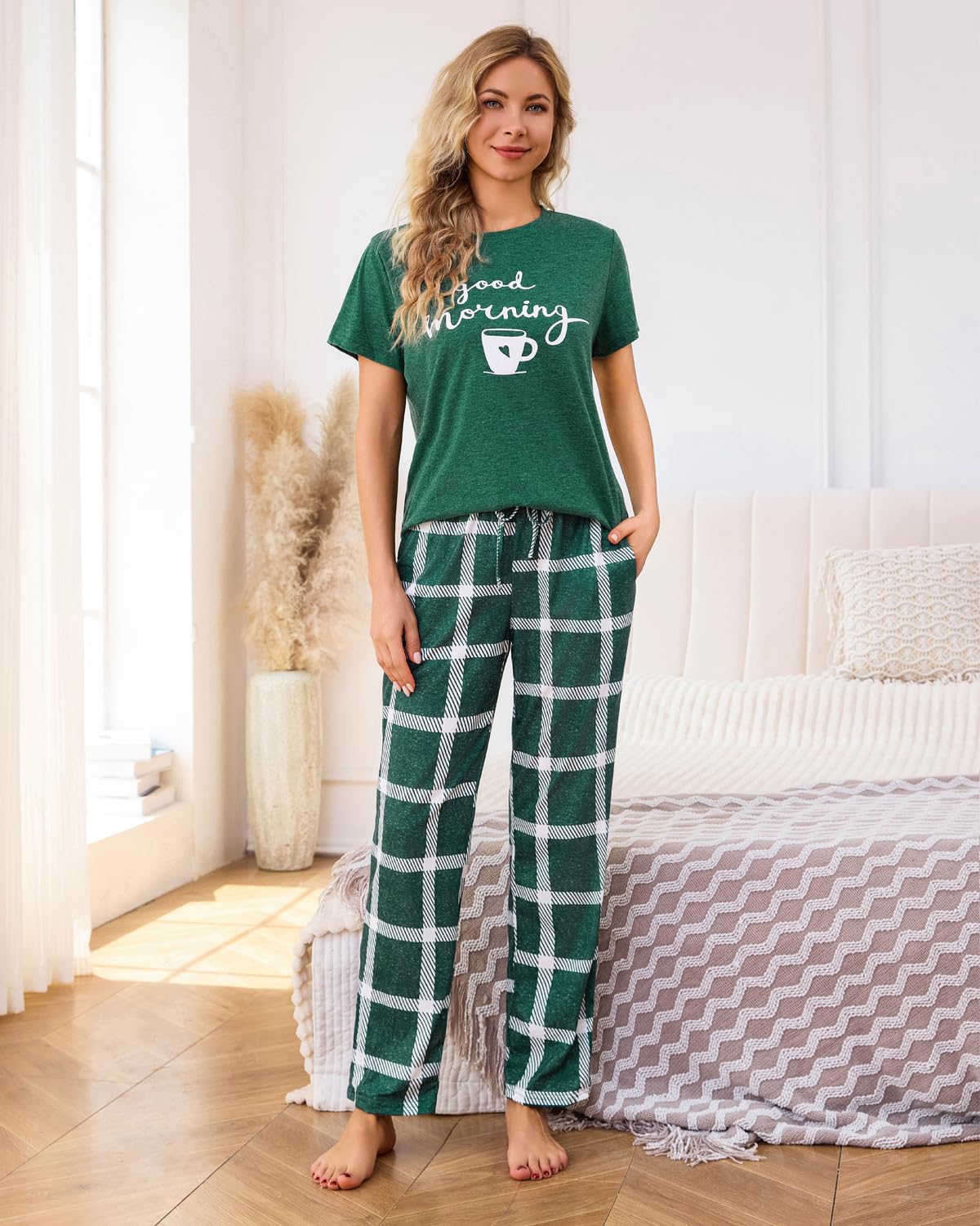 Full-Length Pj Pants: Plaid and polka dot pajamas bottom has 2 pockets to store your belongings; While drawstring waistband fits perfectly on all body shapes