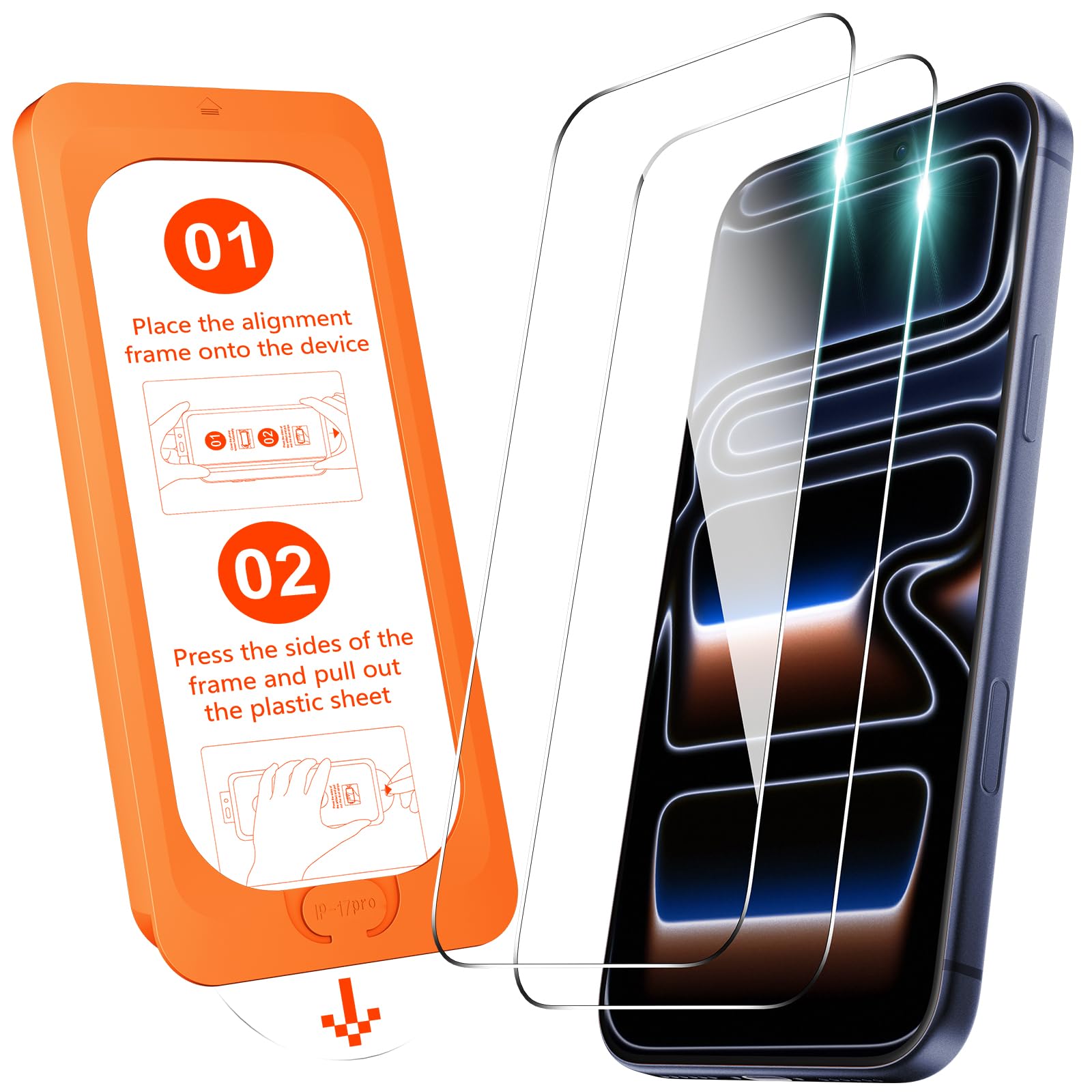 Effortlessly Simple Application: Experience the easiest installation process ever designed for a screen protector. Simply position the alignment frame on your iPhone 17 Pro, gently pull the plastic tab, and watch as the high-quality glass seamlessly settles onto your display. No complicated steps, no messy adhesives, and no frustration. It’s installation made foolproof—so simple you’ll hardly believe it’s done