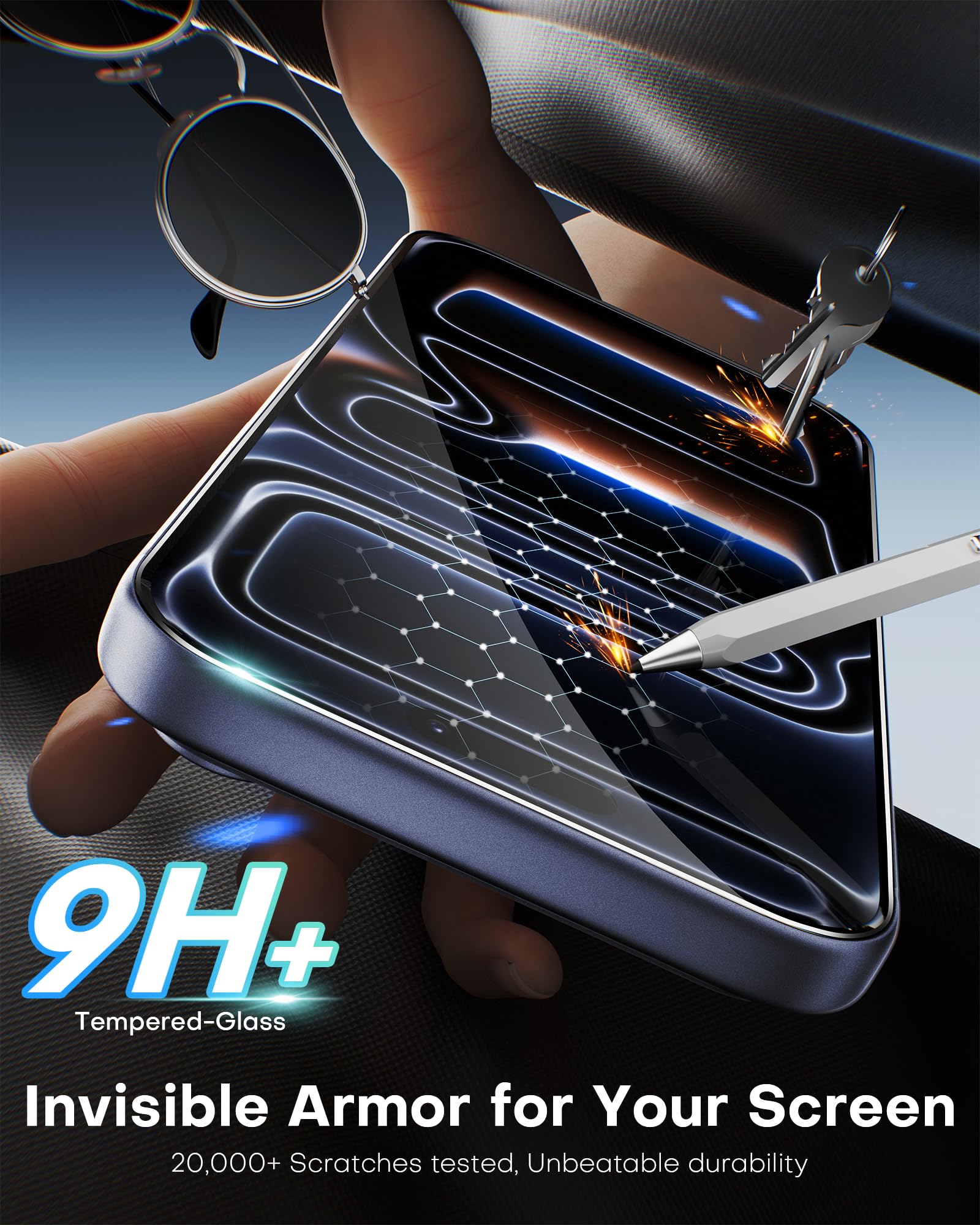 Military-Grade Toughness: Crafted from premium tempered 9H glass, this screen protector delivers exceptional drop and scratch resistance—meeting the rigorous standards adopted by aerospace and military applications. Trust in supreme defense that keeps your iPhone 17 Pro’s display perfectly protected under the toughest conditions