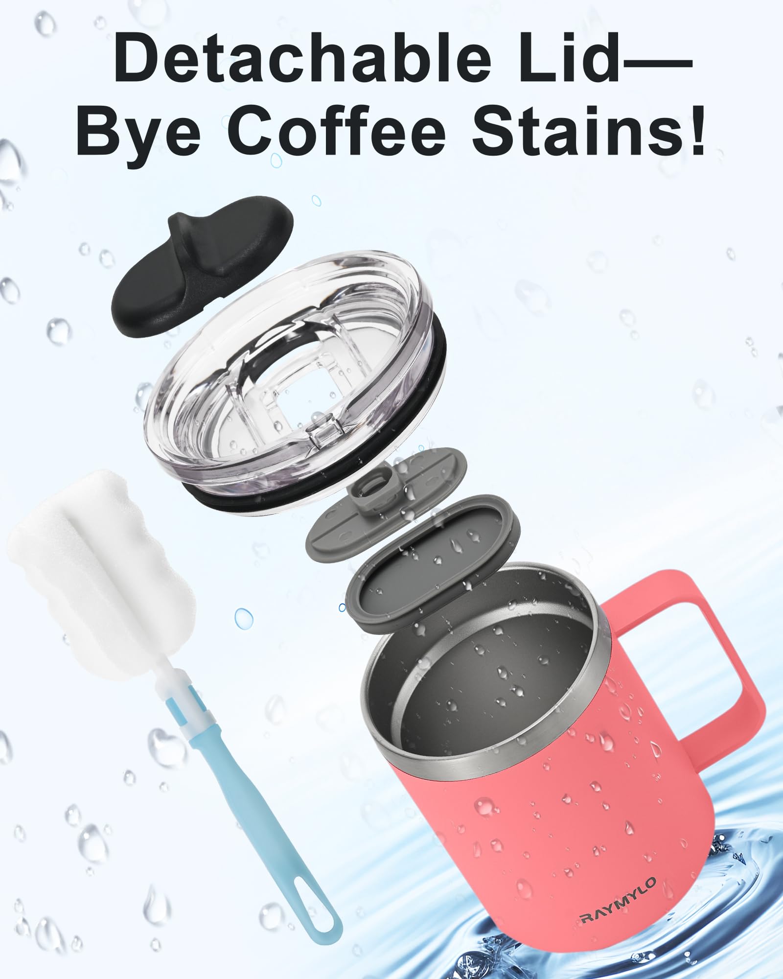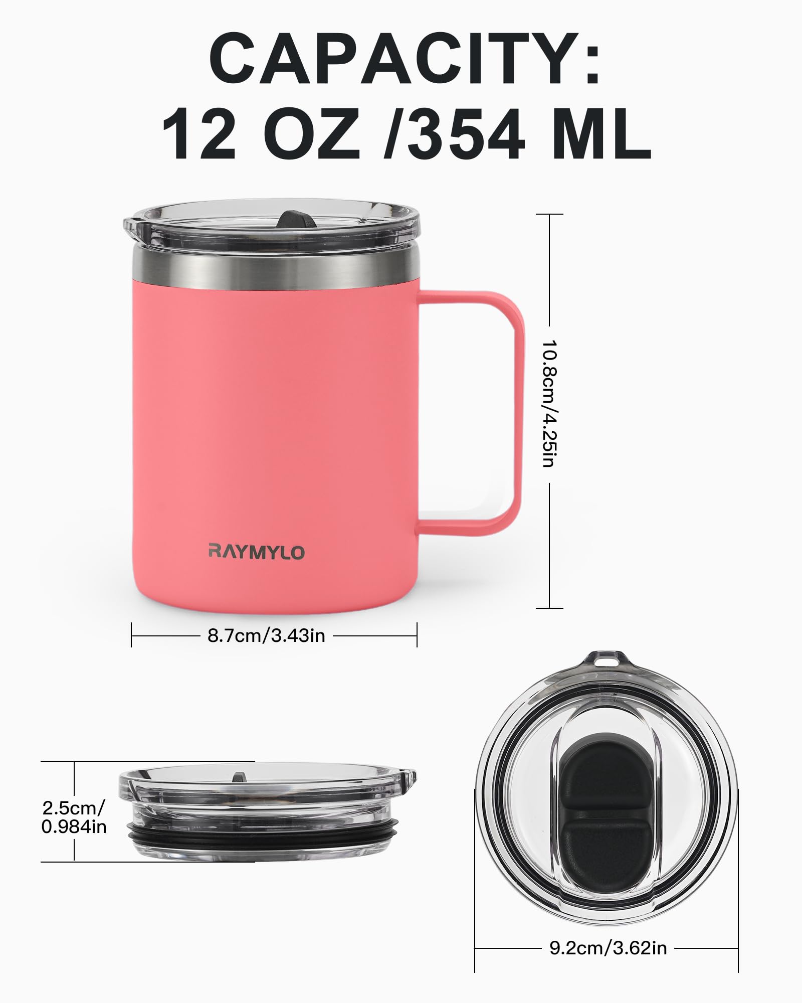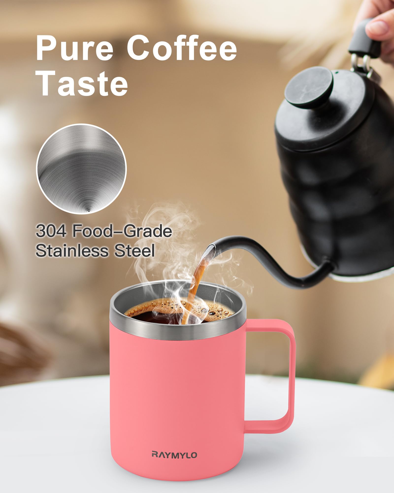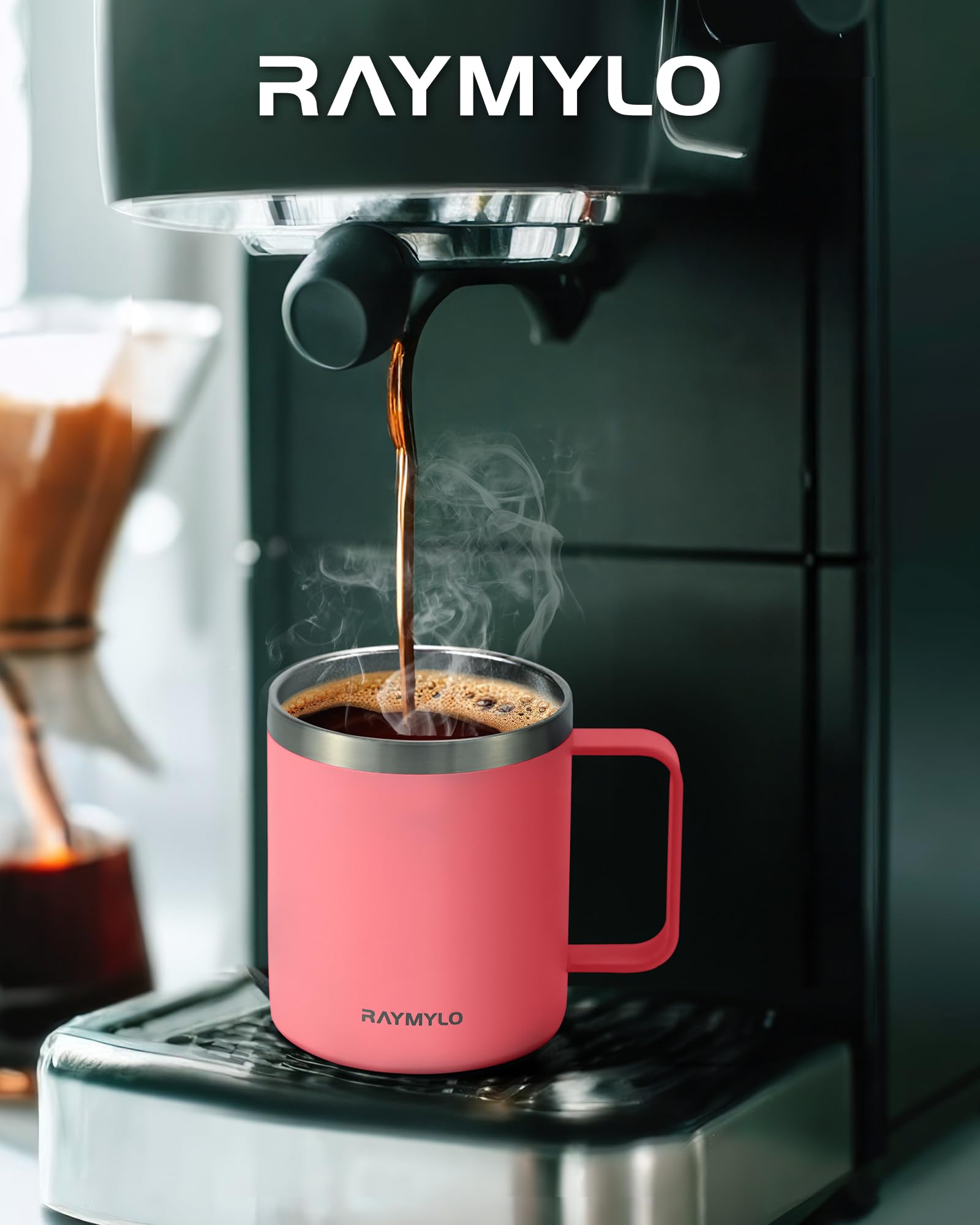 Double-Wall Vacuum Insulation: RAYMYLO Coffee Mug keep your drinks icy-cold for 9 hours and cozy hot for 3 hours with advanced Double-wall design! Perfect for hot summer days or long work hours, this insulated coffee mug with handle ensures your drink stays refreshingly cold or deliciously hot when you need it most.