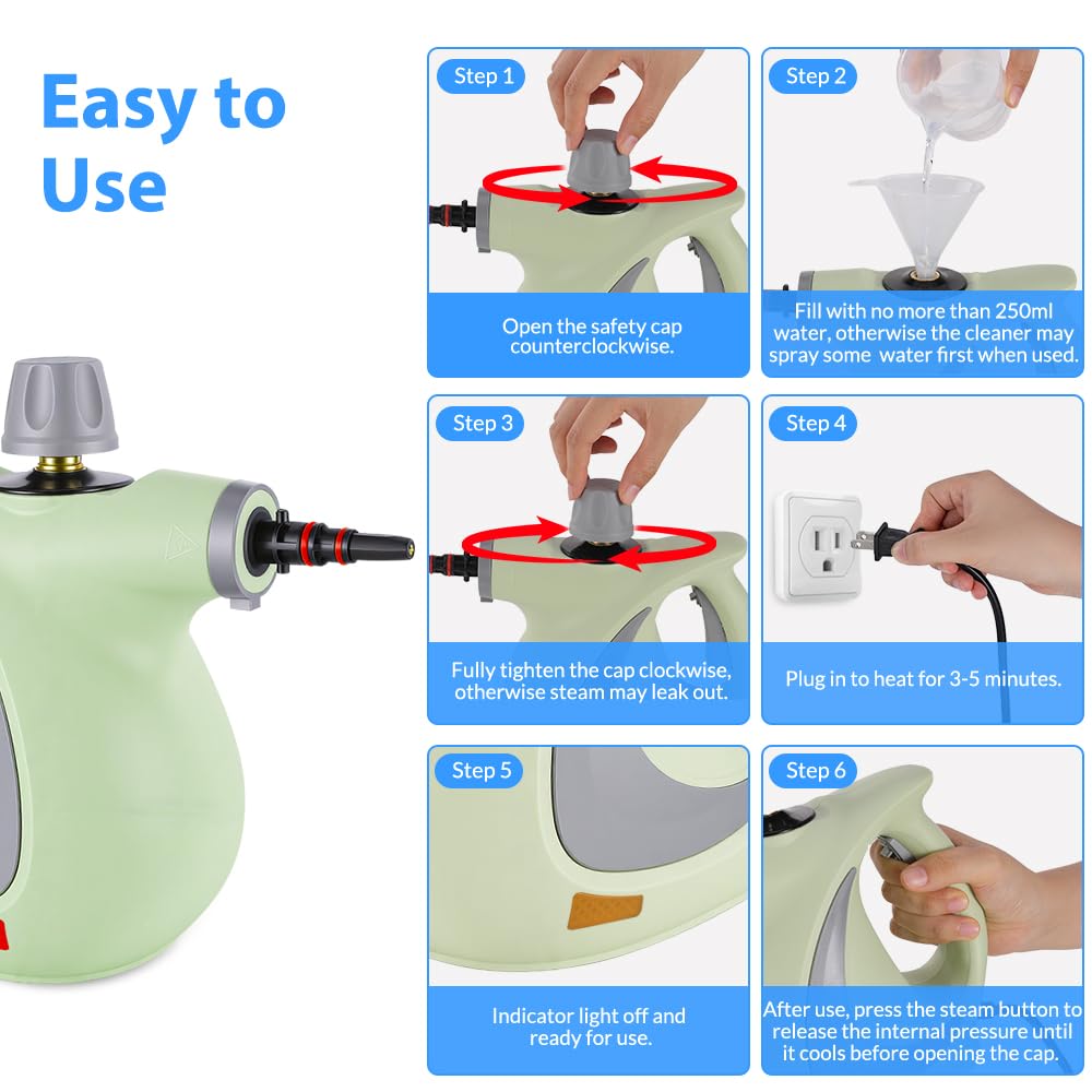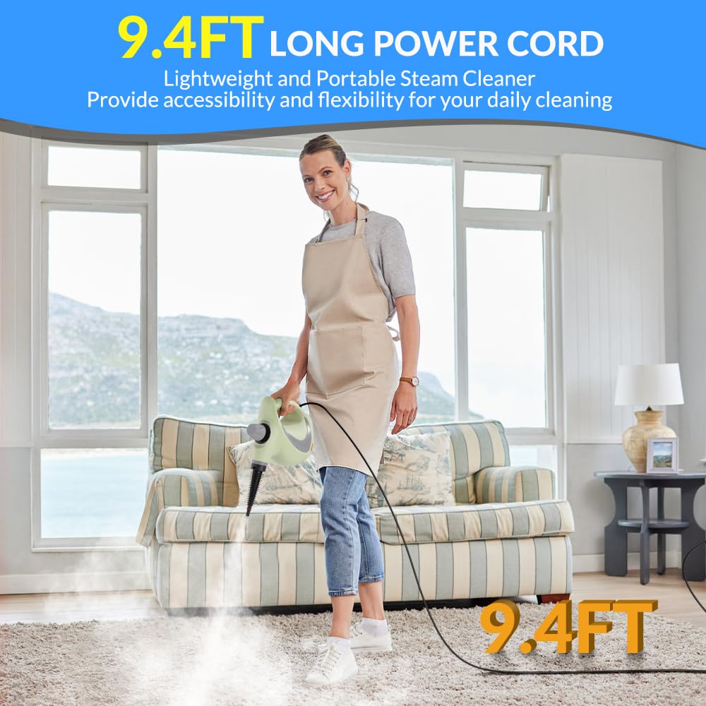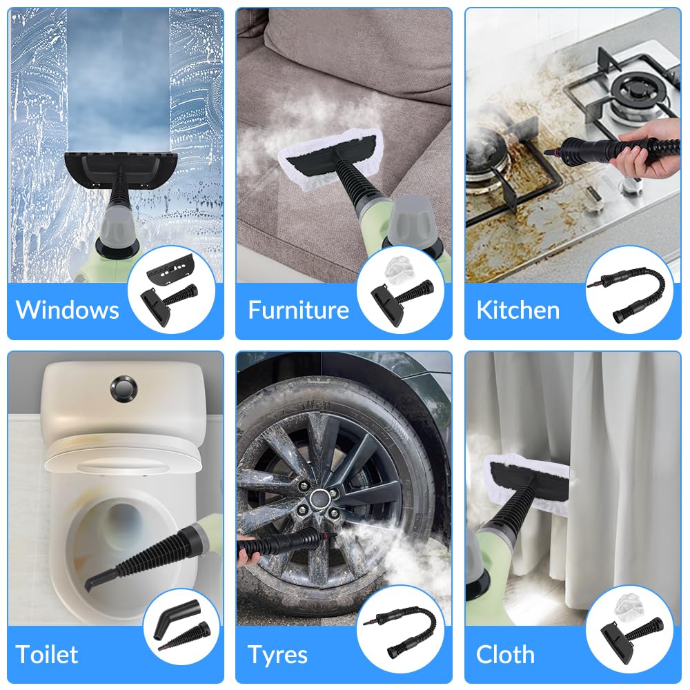 Multifunctional Steam Cleaner: Our handheld steam cleaner is a versatile and fully equipped cleaning tool, you can use this steamer to clean floor, tile, grout, fabric and sofa material, windows, car, furniture, upholstery, sink, gap, wall, kitchen, bath and more