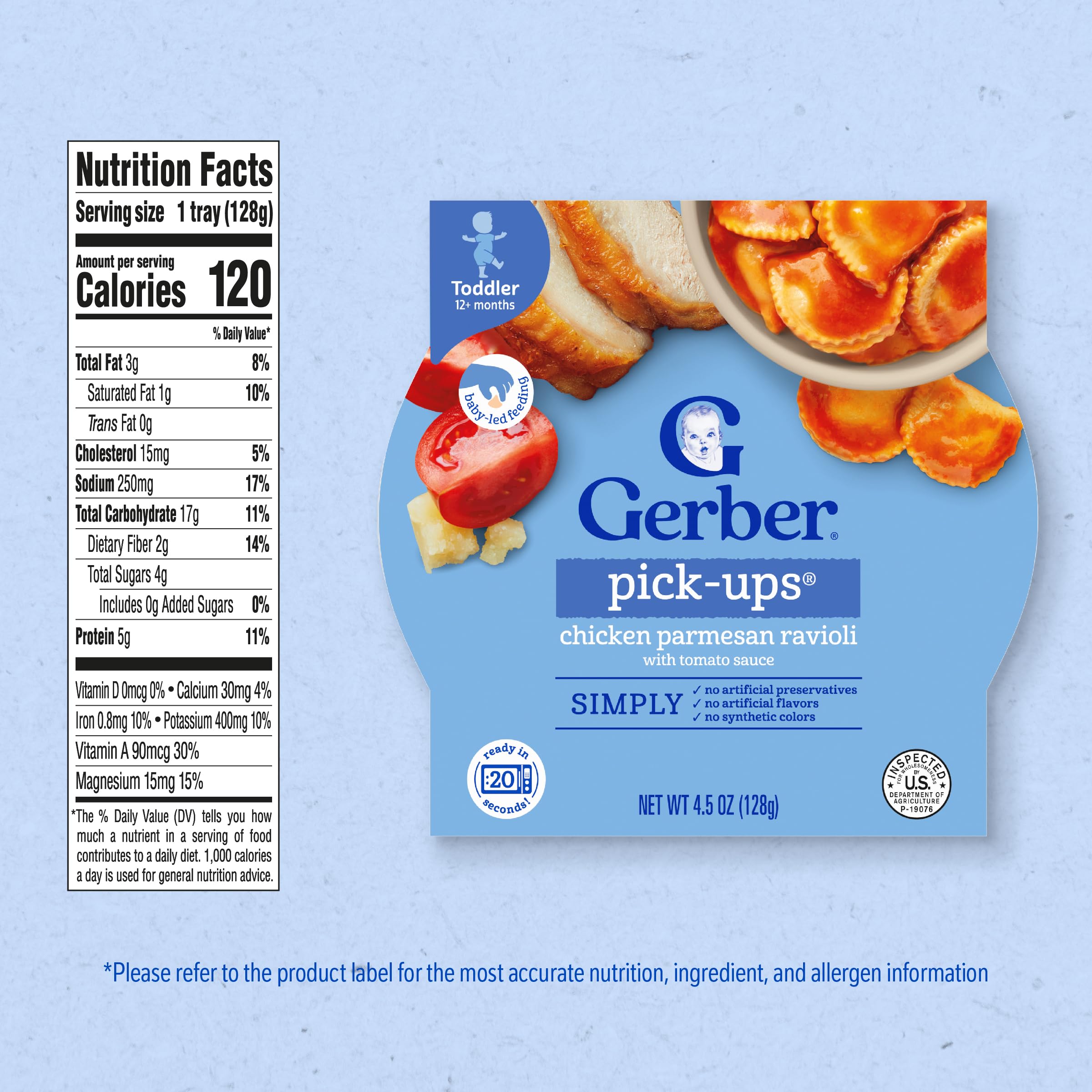 MEALTIME FOR TODDLER: This toddler approved mealtime comes with chicken parmesan ravioli in tomato sauce. Ready to eat in under 5 minutes, Gerber ravioli is perfect for busy parents who need a quick and nutritious option for their little one