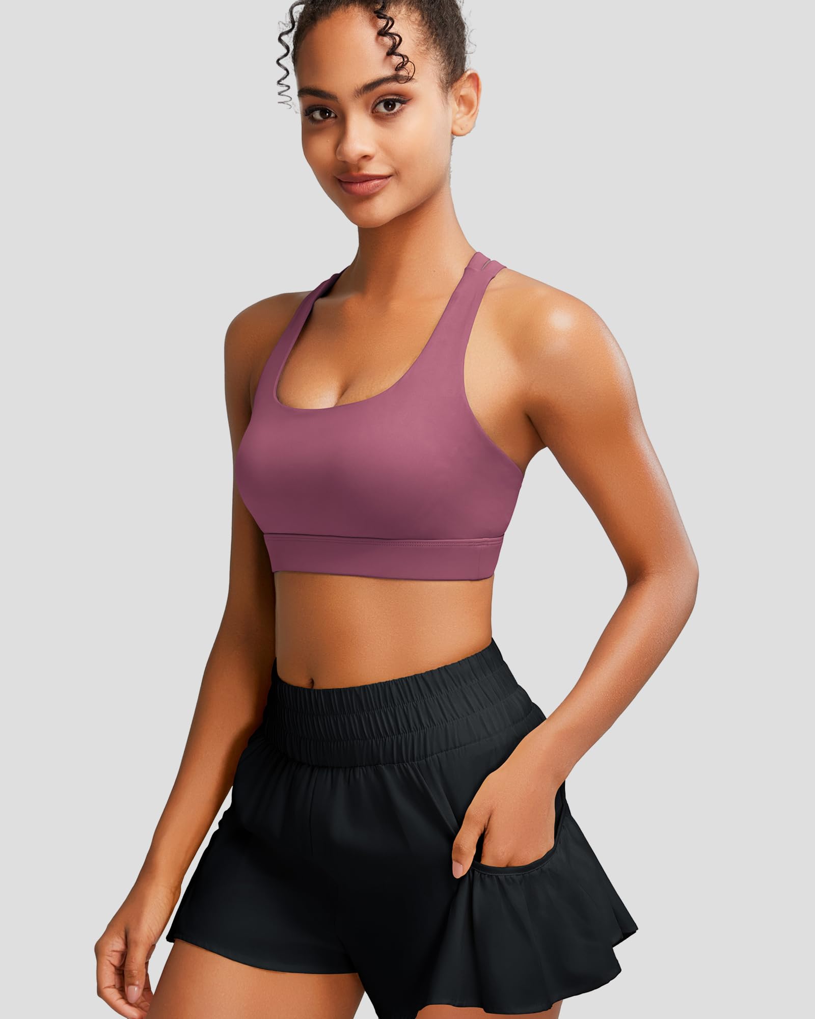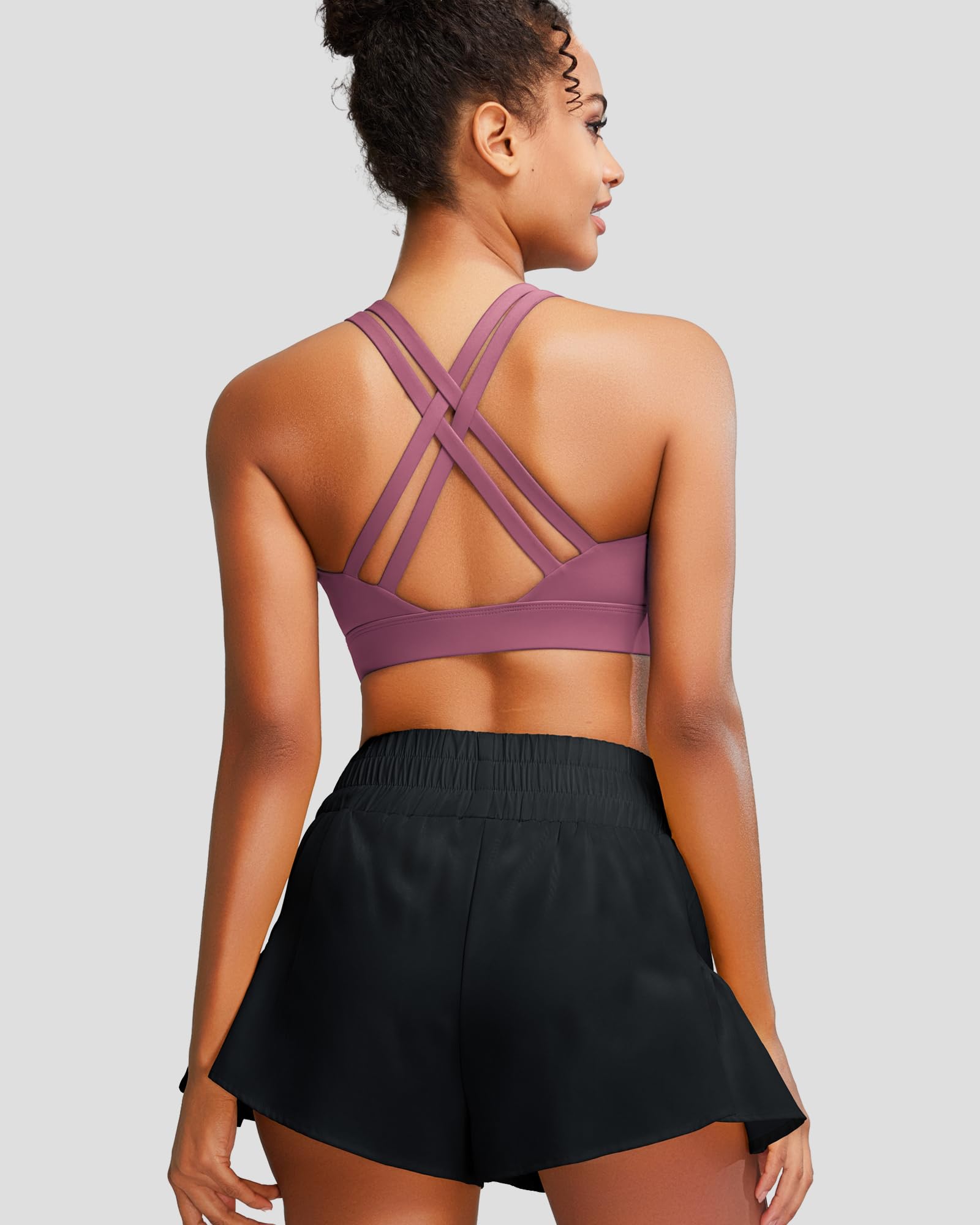 ✅ 【SWEAT OUT IN STYLE! 】: Made from a flexible four-way stretch fabric that supports your body as you move. Enjoy the freedom of movement as the open back styles aim to keep you comfy and cool while you bring on the heat! Running sports bras for women with wide waist band for that support we all need!