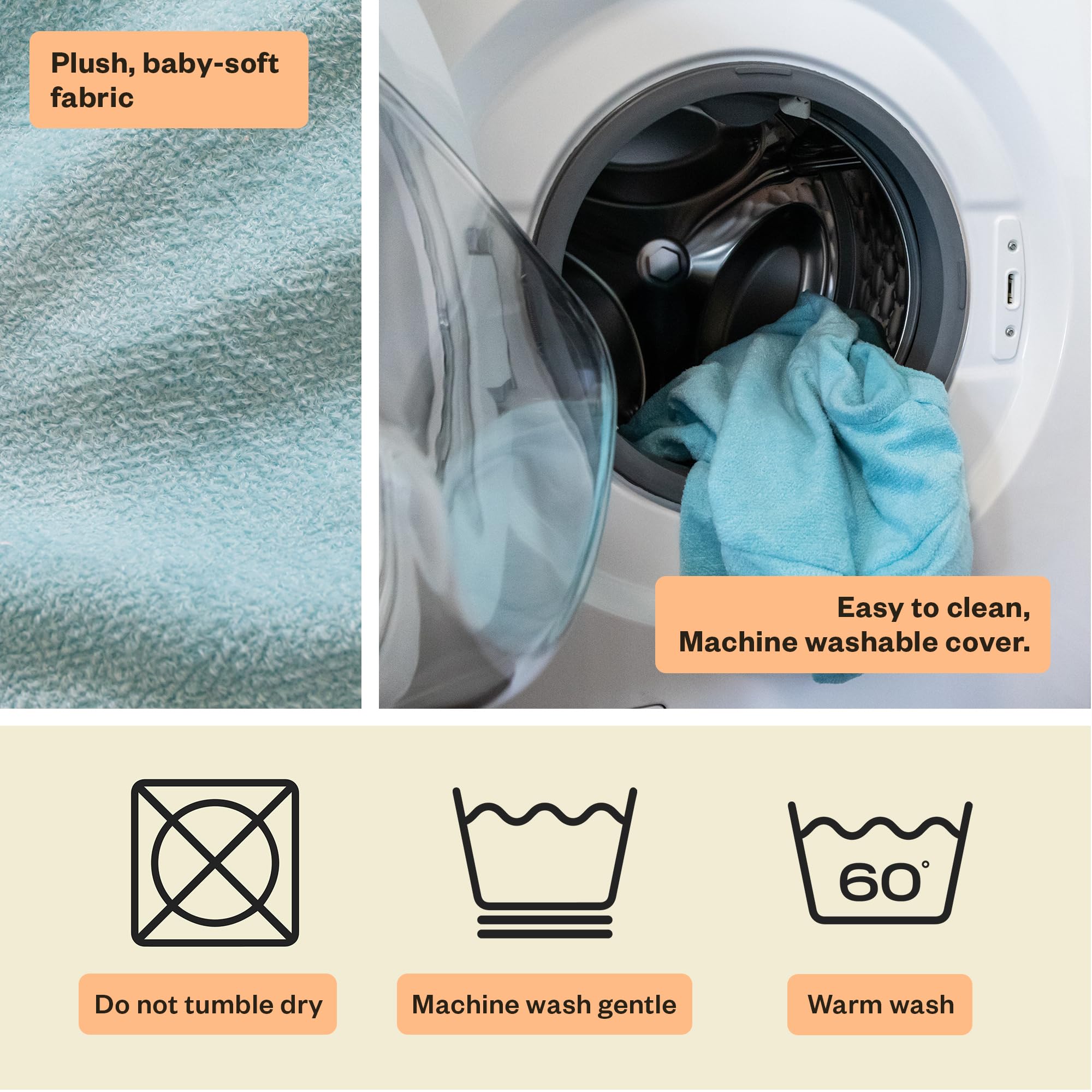 POLYESTER SLIPCOVER: Our nursing pillow includes a removable slip cover made from polyester. It provides breathability, soft & gentle surface for your baby's sensitive skin. Machine-washable & easy to maintain hygiene & freshness.