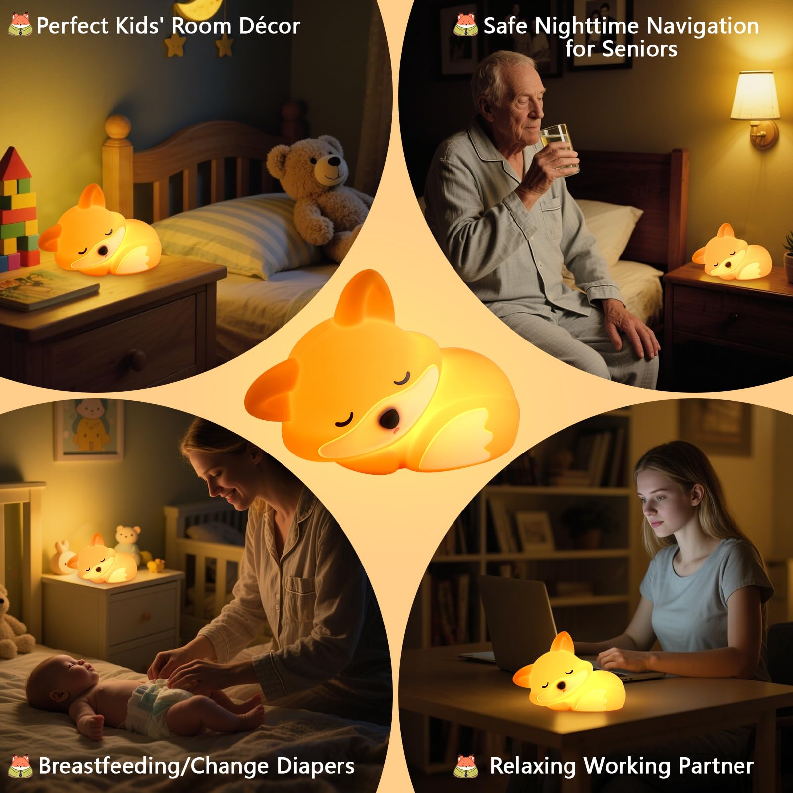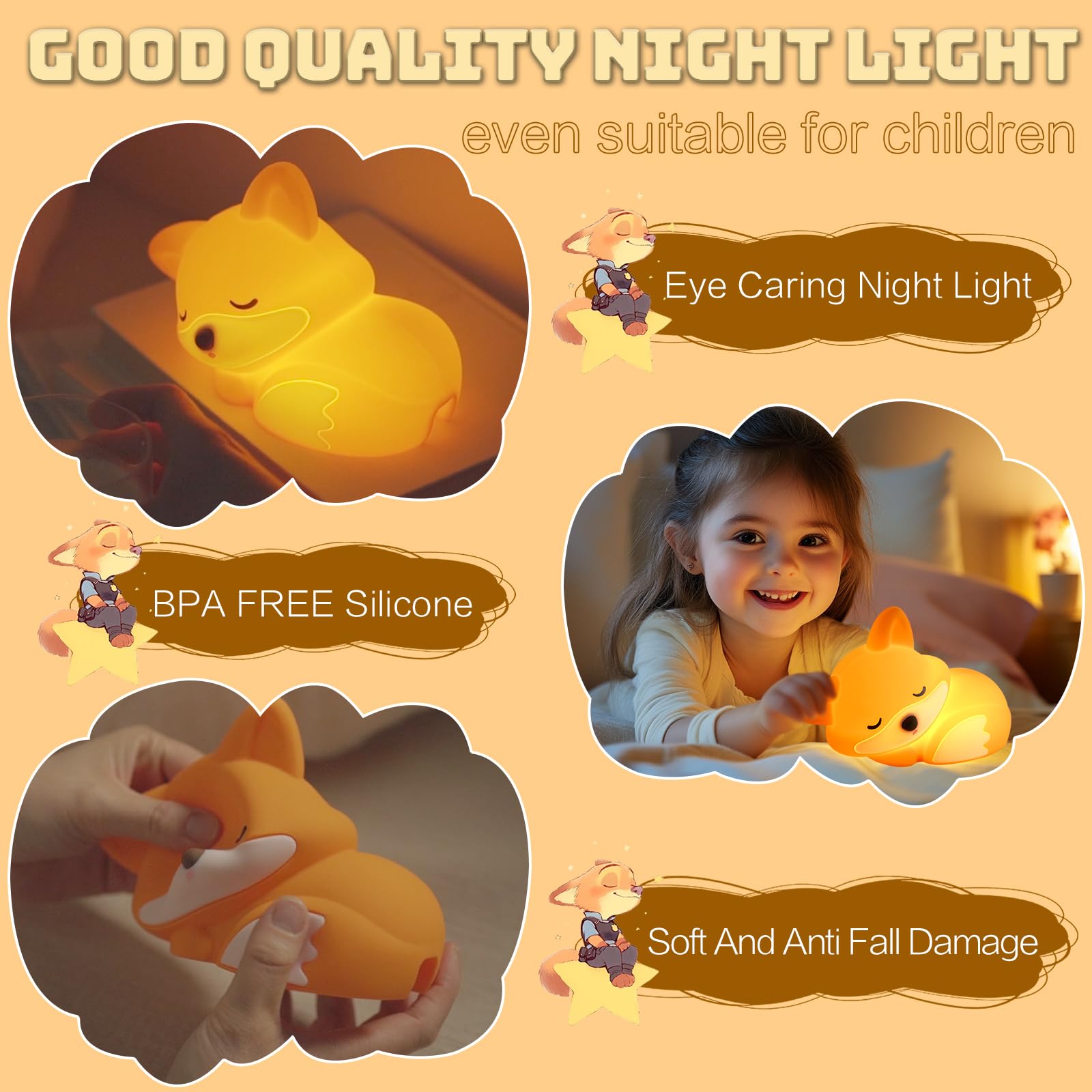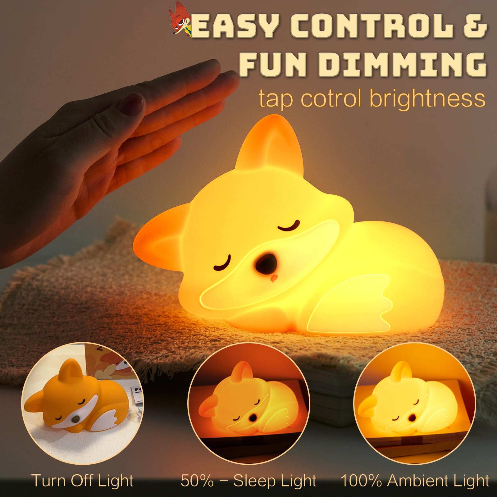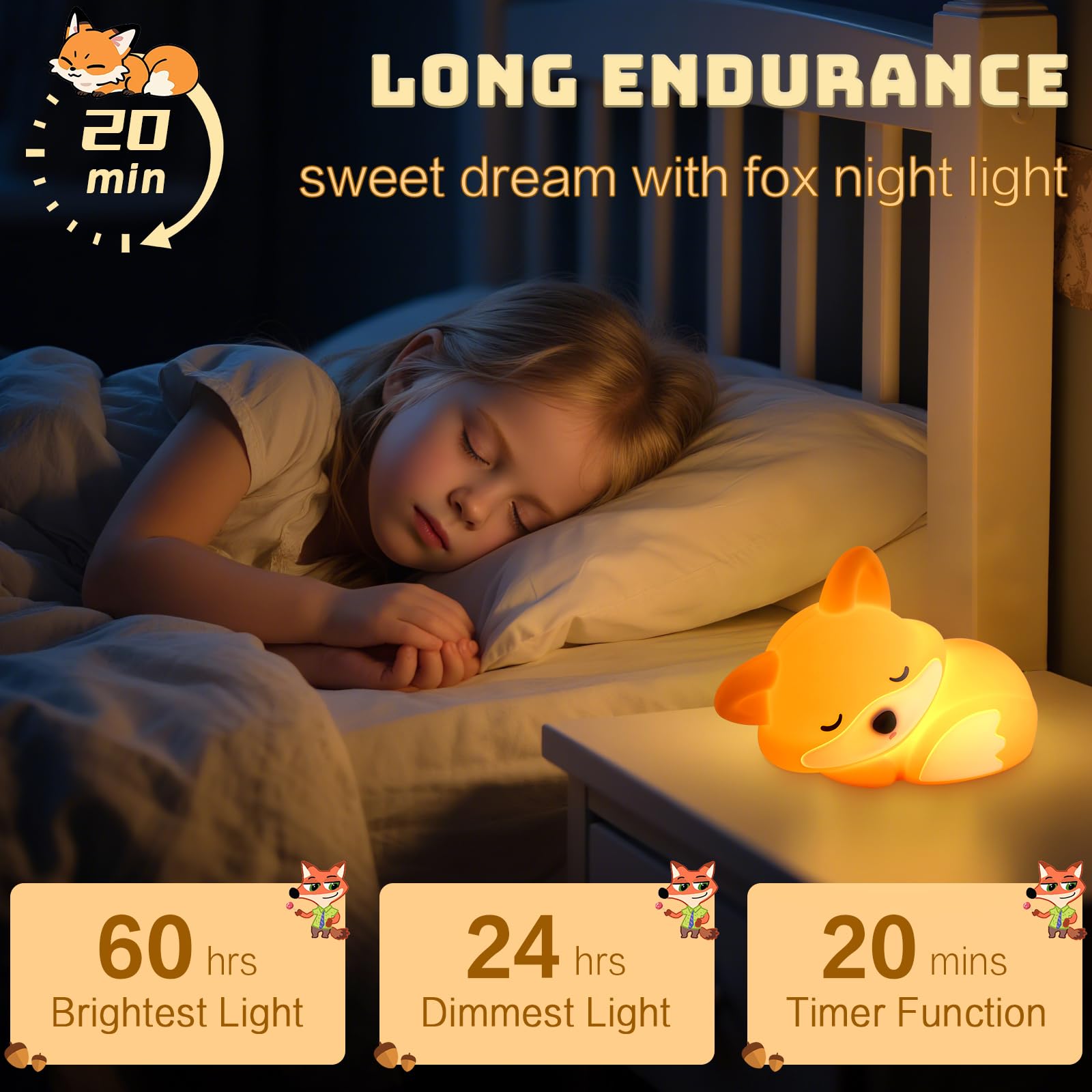 2 Levels Dimmable & 20mins Timmer: With 2 brightness settings controlled by a simple tap on the animal's bottom, plus a convenient 20-minute auto shut-off feature, this orange night light provides the perfect amount of soft, warm lighting for a cozy atmosphere. With a built-in 1200mAh rechargeable battery, this fox orange lamp can run for up to 24 hours on a single charge, making it portable and wireless for use during nighttime feedings, camping trips, or as an emergency light.