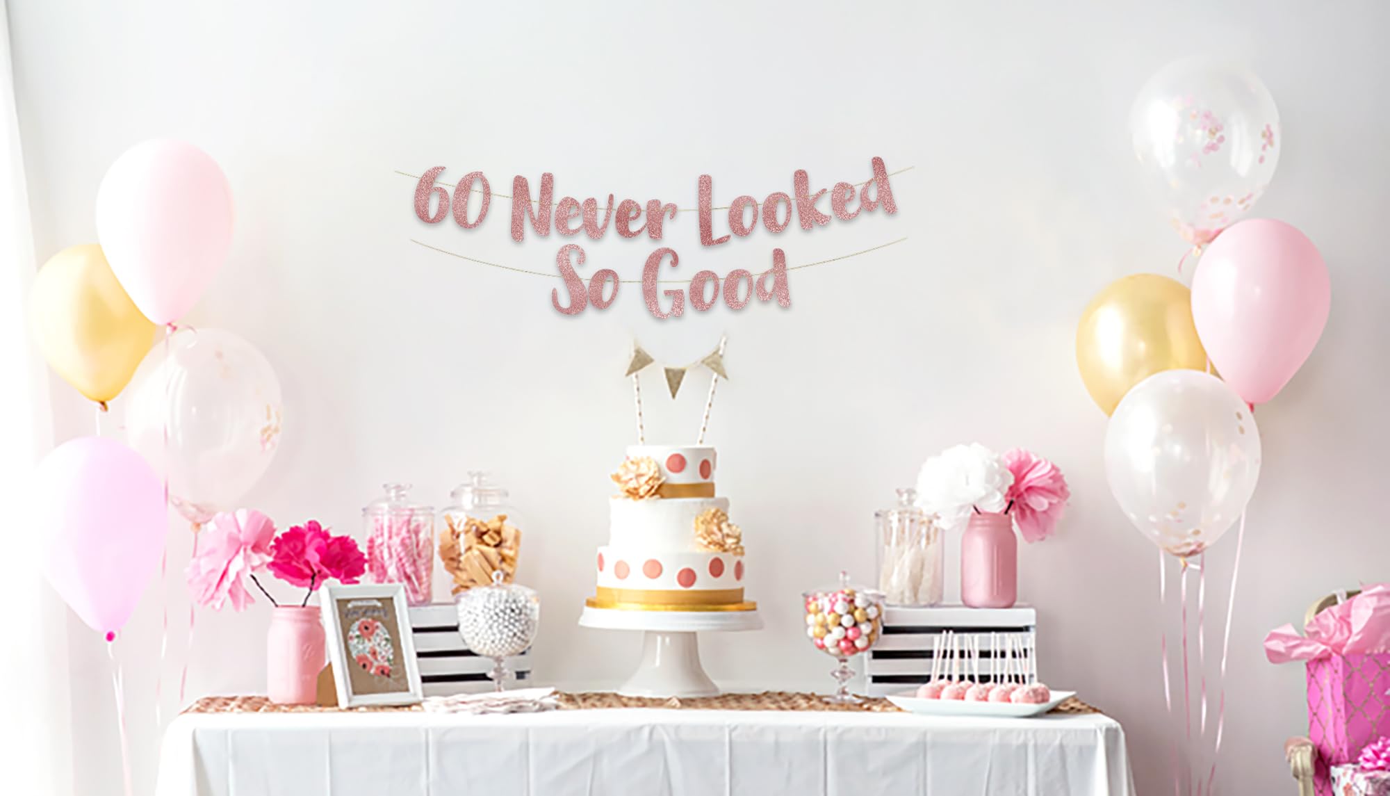 Congrats on 60 years of excellence! This rose gold glitter banner is the perfect decoration to add a touch of classy decor and welcome your guests to the occasion.
