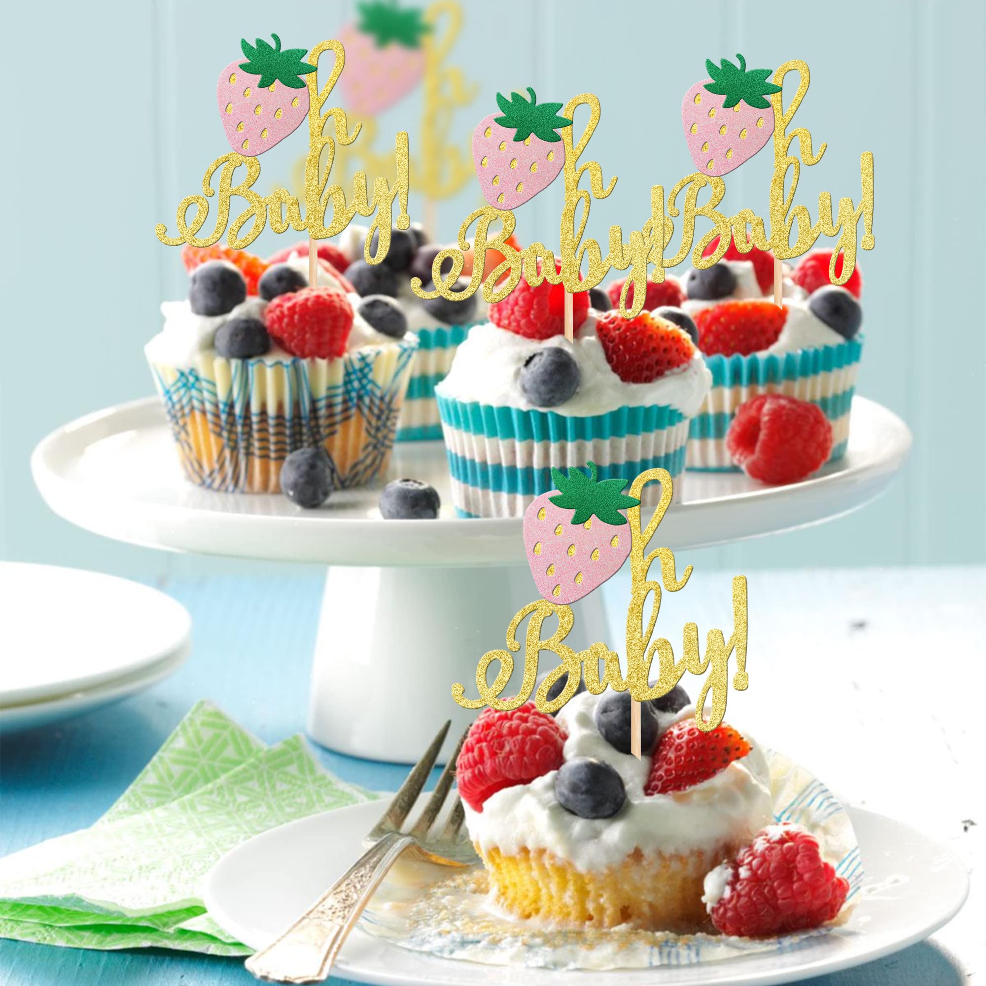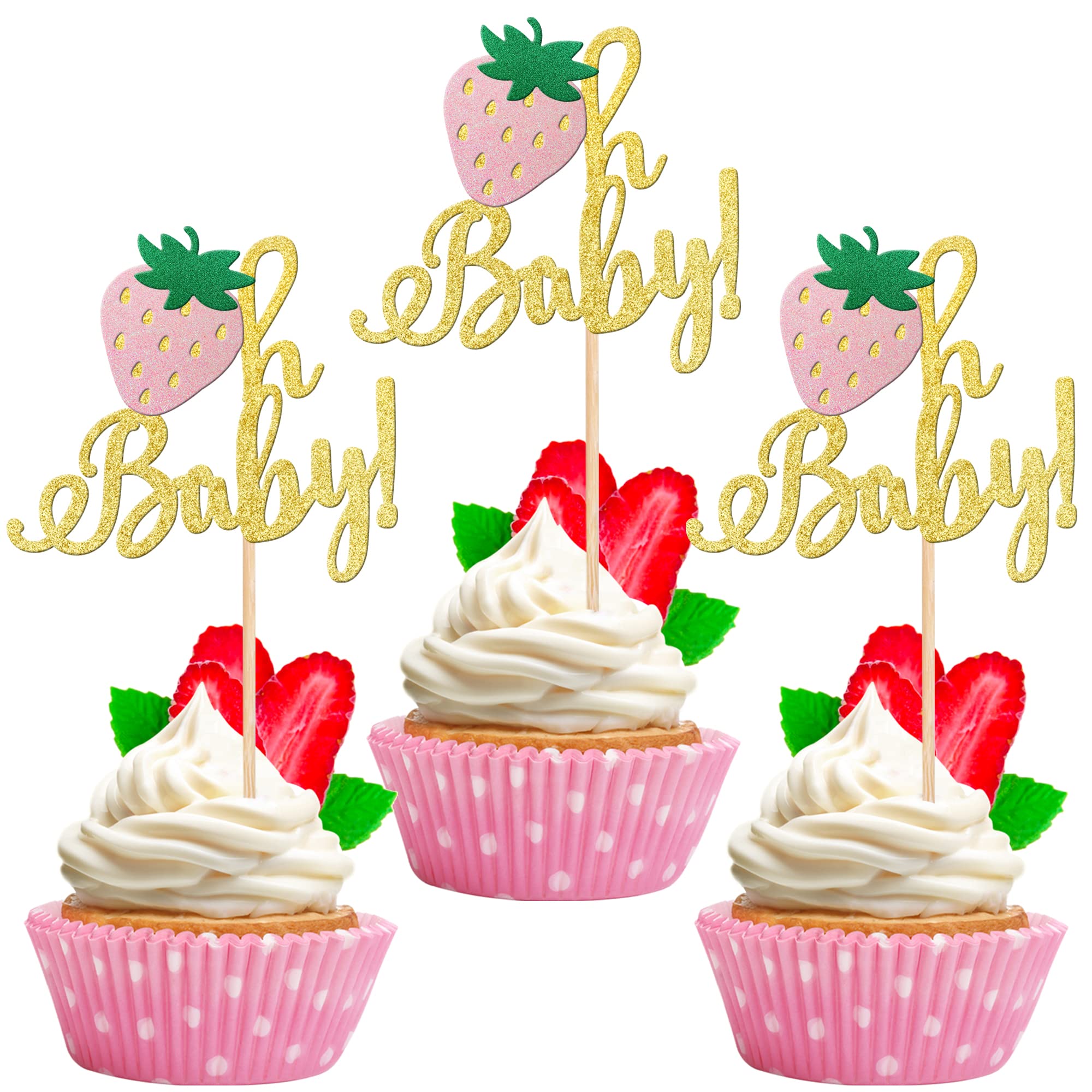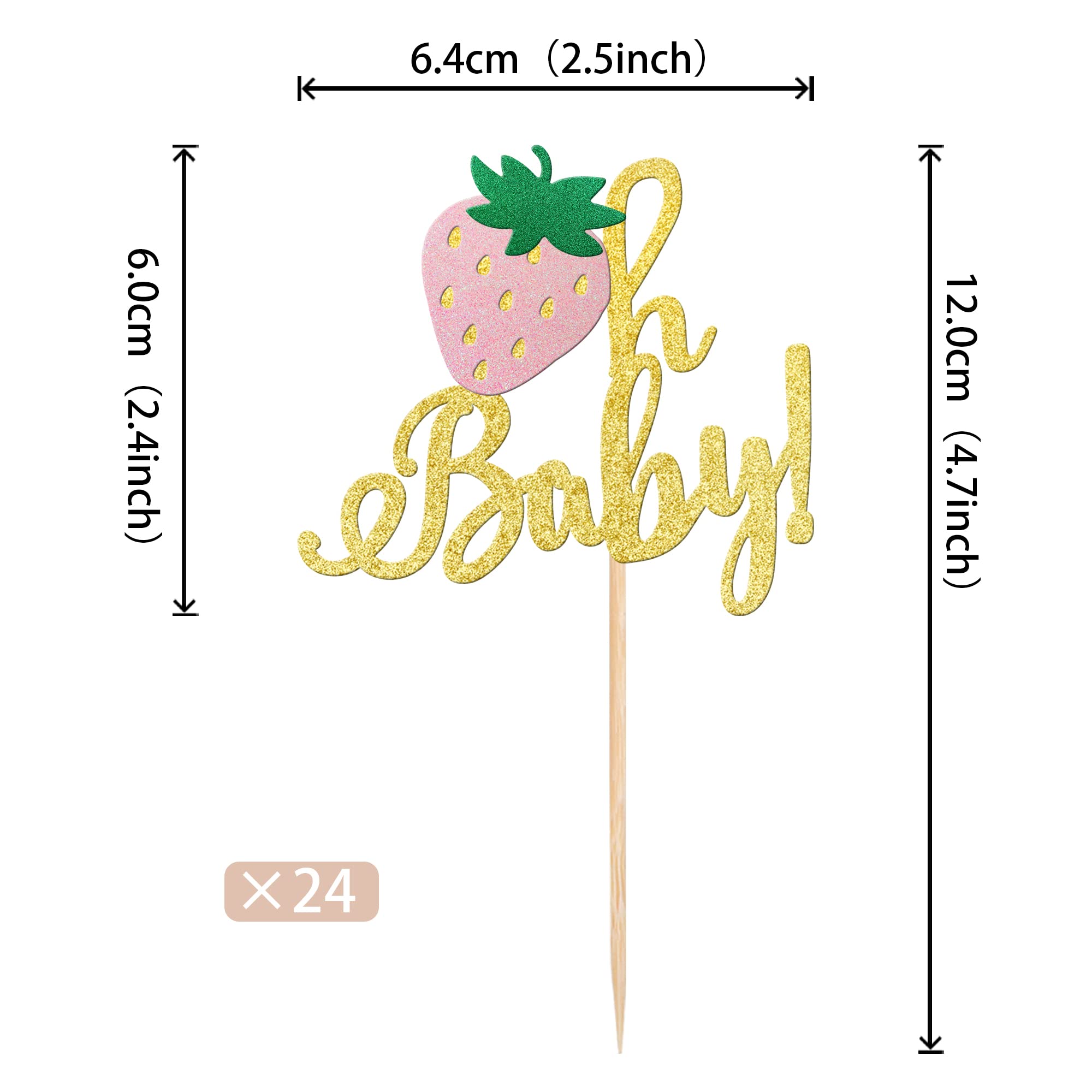 Strawberry Oh Baby Theme Baby Shower Kids Birthday Party Cupcake Decorations Supplies Perfect for strawberry oh baby theme party, fruit theme party, baby shower theme party , Kids 1st birthday party cupcake decorations supplies. Pack of 24 pcs. The size is 2.5 *4.7 inch ( with stick ) Made of high quality paper card stock and food grade sticks,thick and thick and sturdy. These cupcake toppers are single glitter, the back is white, and they are intended for decoration only, please do not put them in oven or microwave. If the item you received has any defects, please contact us for refund.we will deal with it within 24 hours.