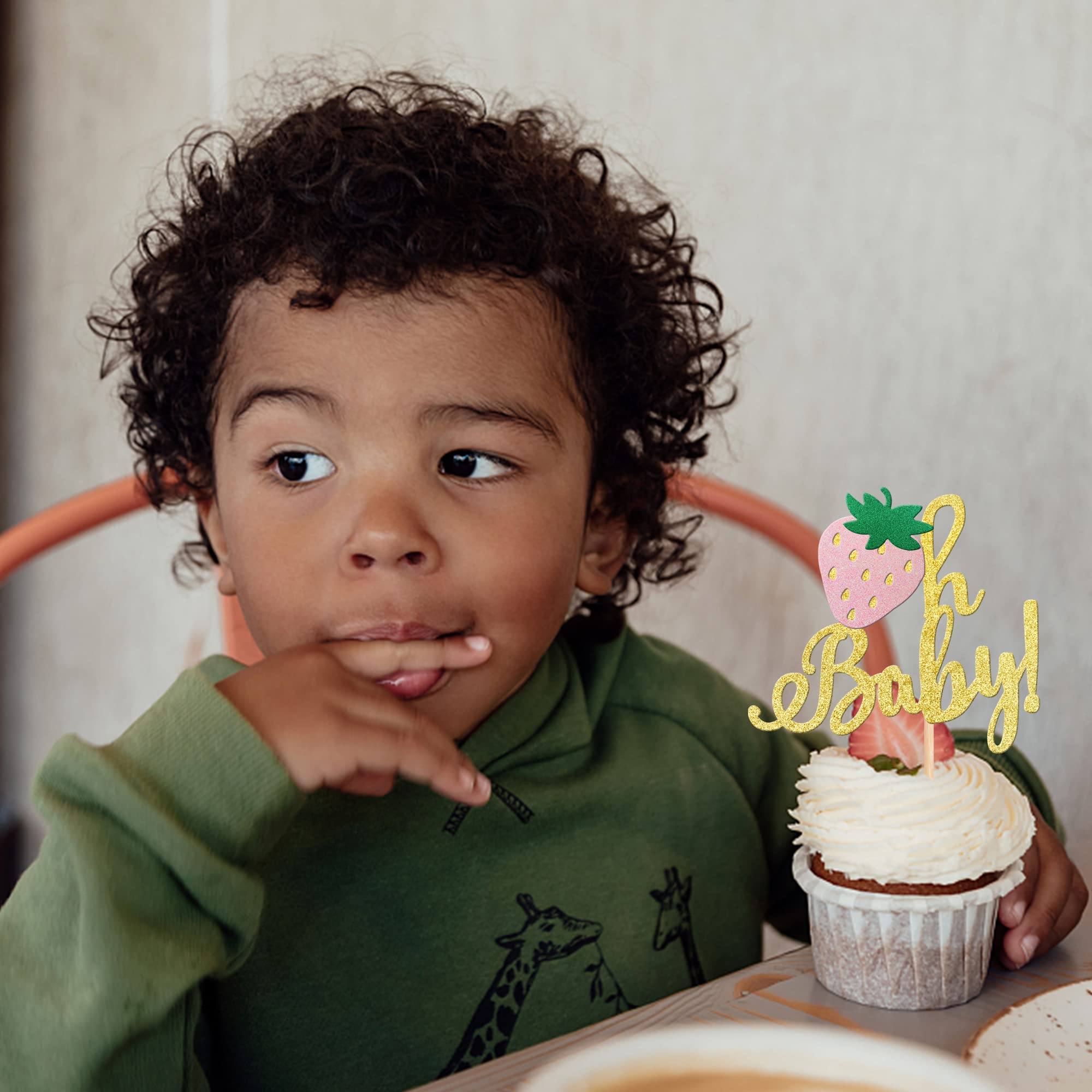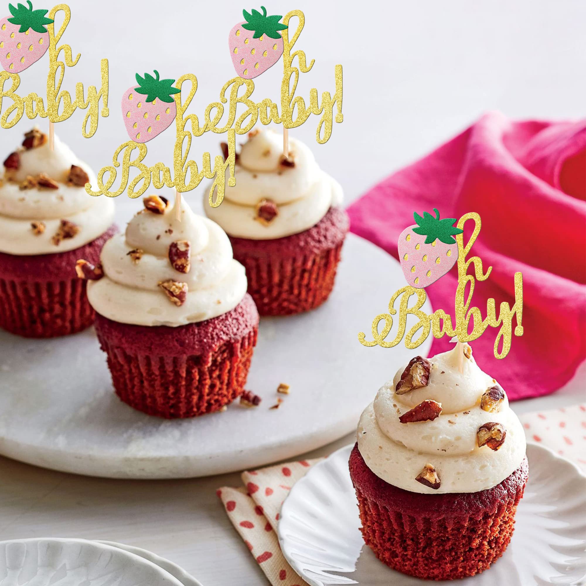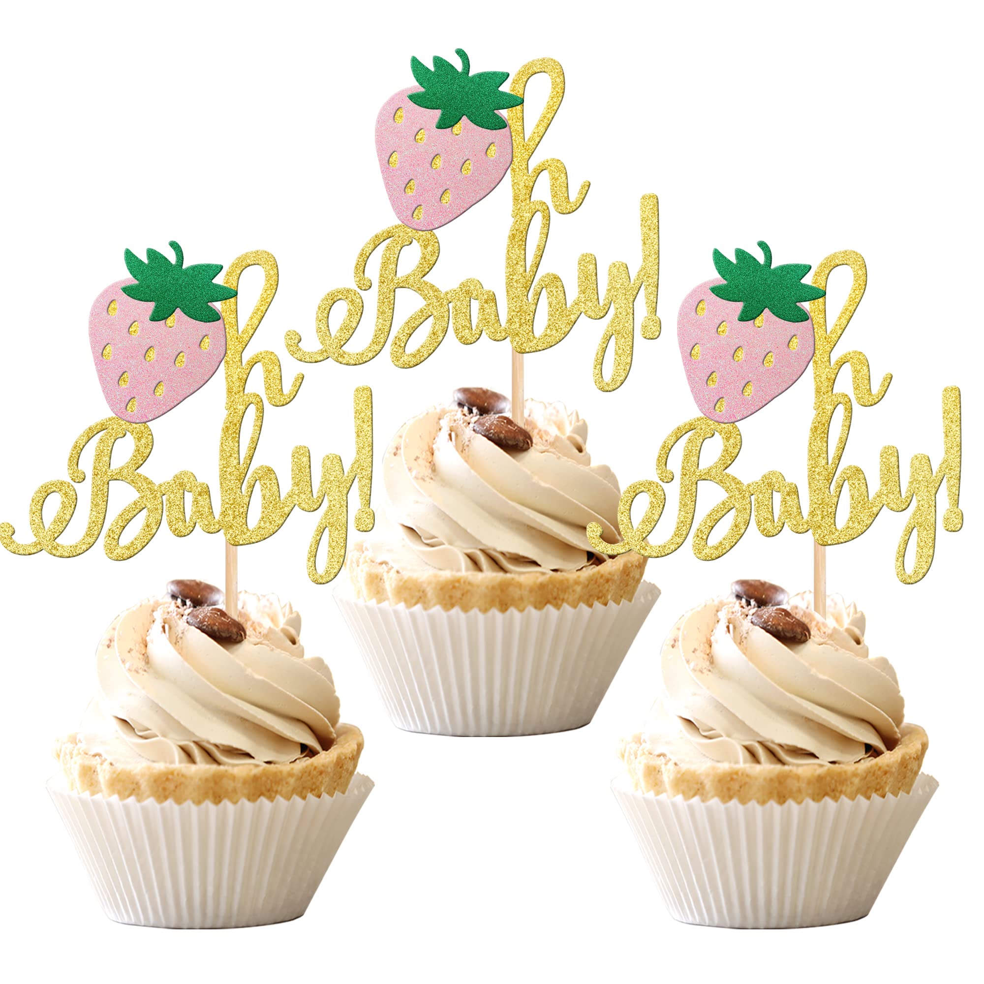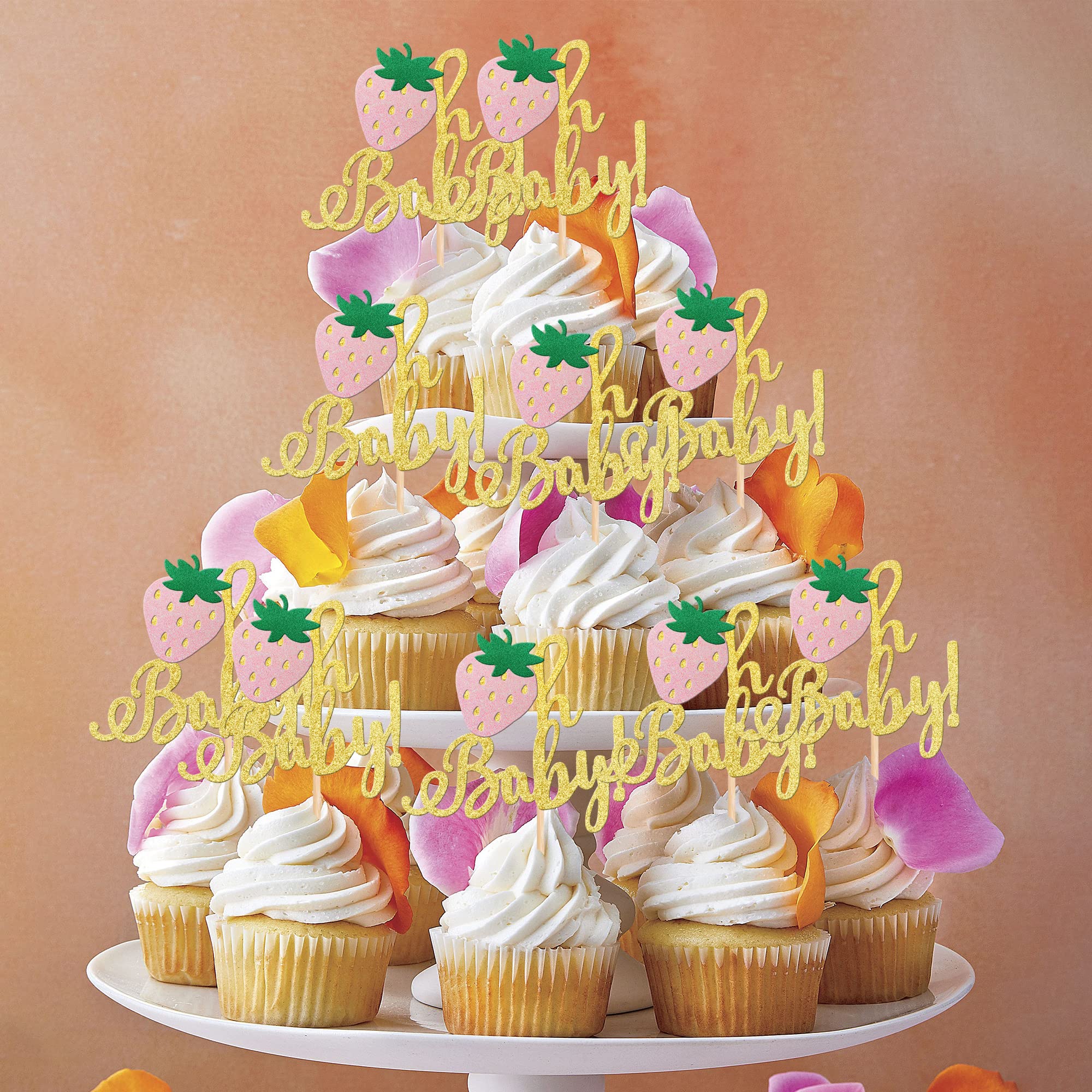 Strawberry Oh Baby Theme Baby Shower Kids Birthday Party Cupcake Decorations Supplies Perfect for strawberry oh baby theme party, fruit theme party, baby shower theme party , Kids 1st birthday party cupcake decorations supplies. Pack of 24 pcs. The size is 2.5 *4.7 inch ( with stick ) Made of high quality paper card stock and food grade sticks,thick and thick and sturdy. These cupcake toppers are single glitter, the back is white, and they are intended for decoration only, please do not put them in oven or microwave. If the item you received has any defects, please contact us for refund.we will deal with it within 24 hours.
