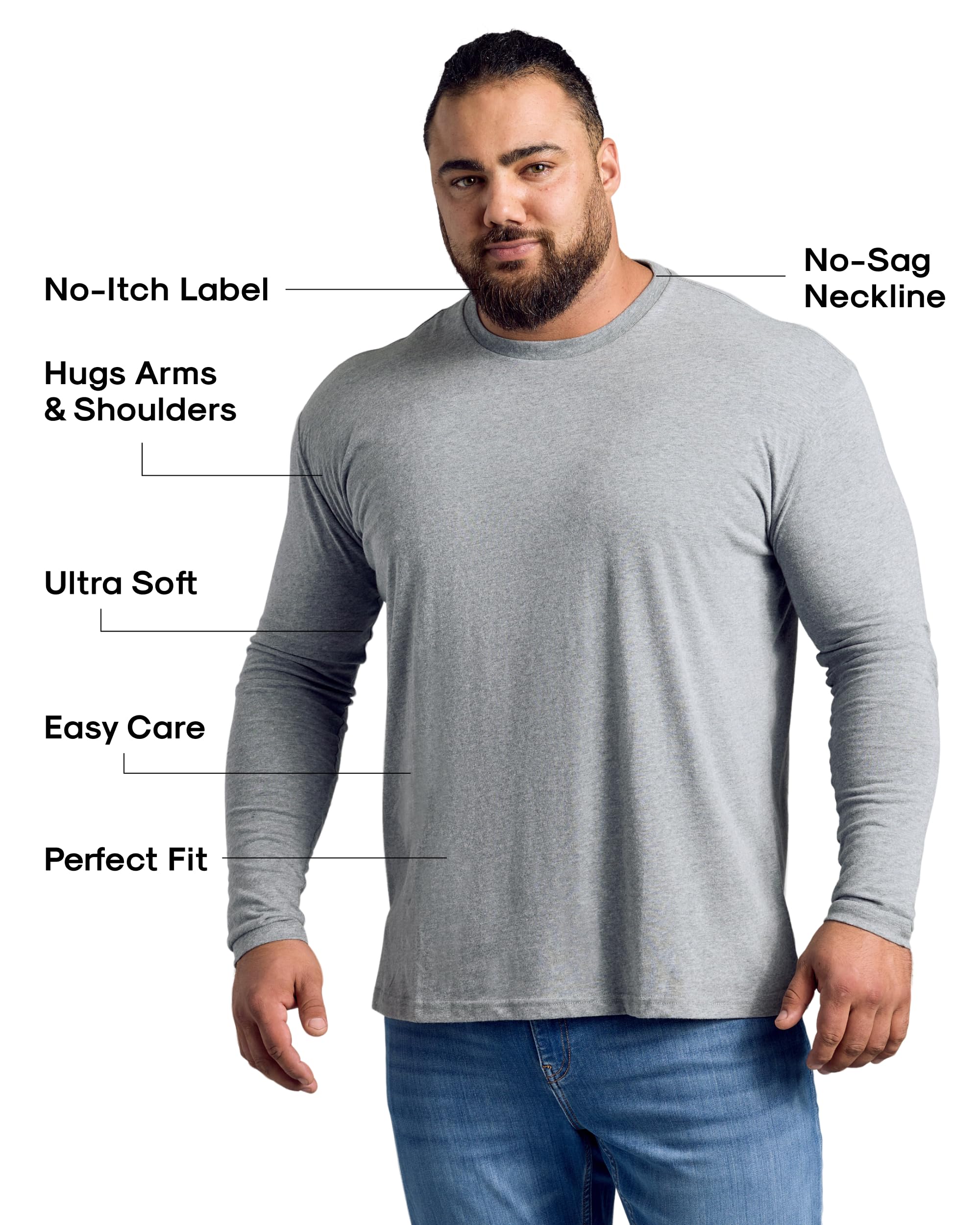 ALL-DAY COMFORT, TAG-FREE: Long sleeve men's t-shirts built for easy wear from workdays to weekends. Our classic crew and mens henley shirts have tagless prints with classic side seams that keep shape with minimal shrinkage (about 5% on low heat).